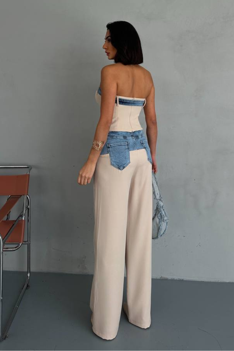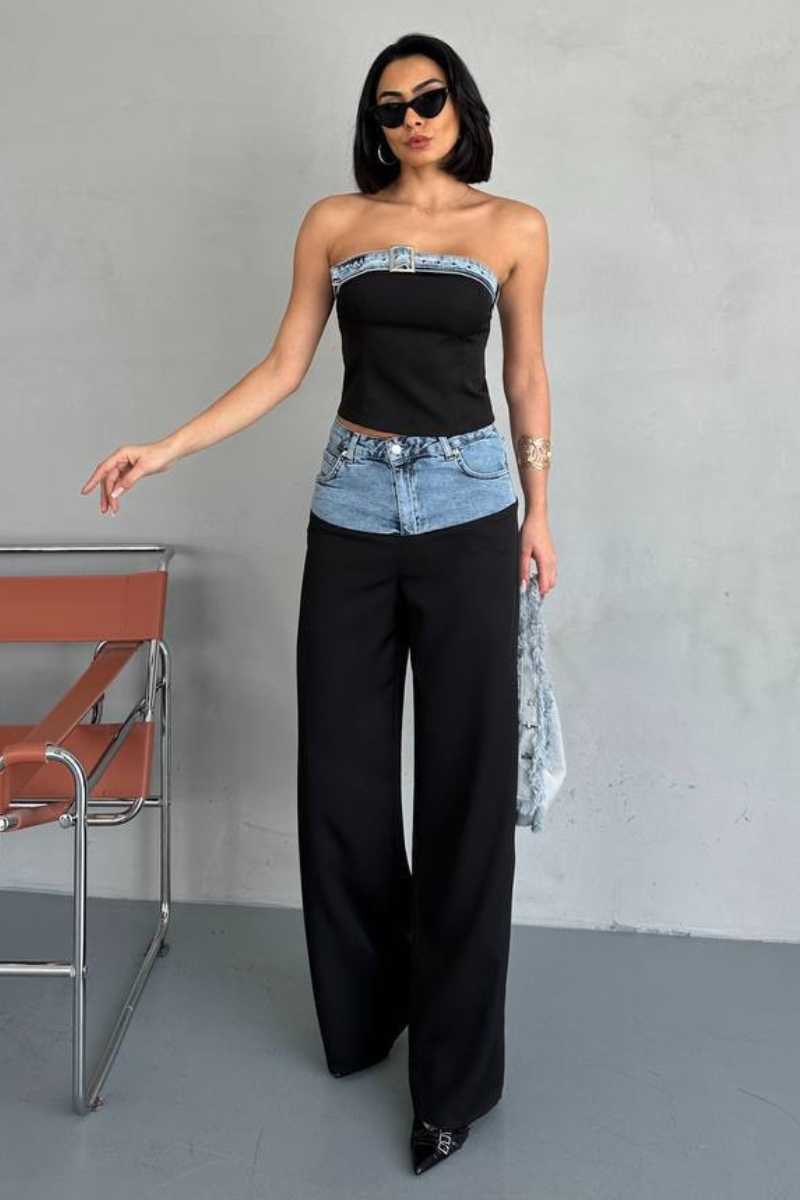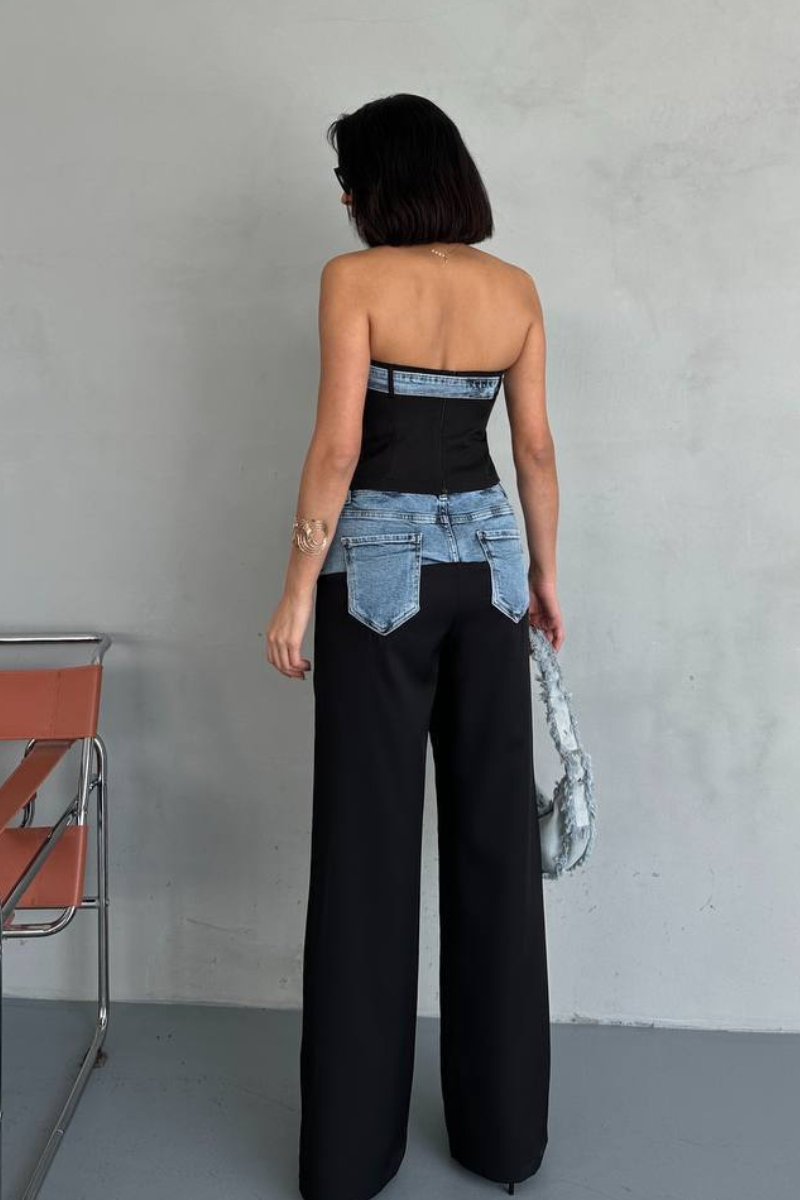 Turn heads with this edgy denim mix set, blending classic jeans style with modern flair.