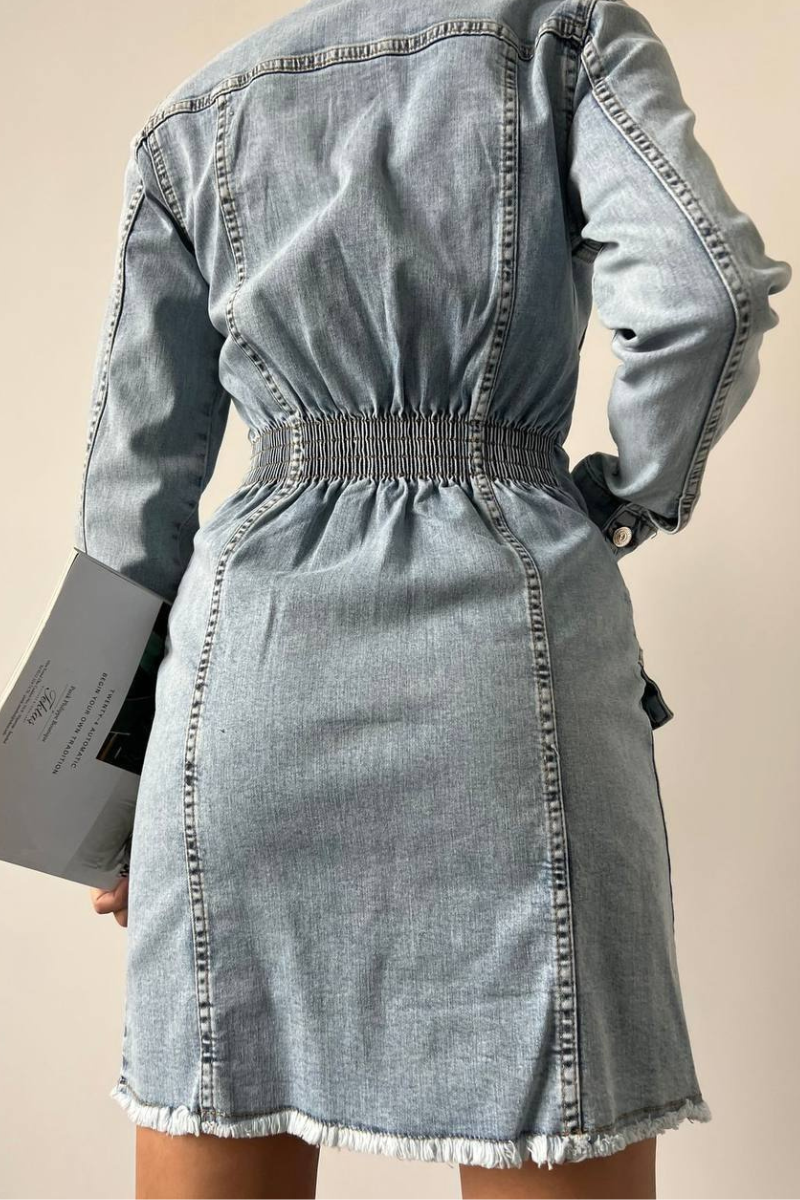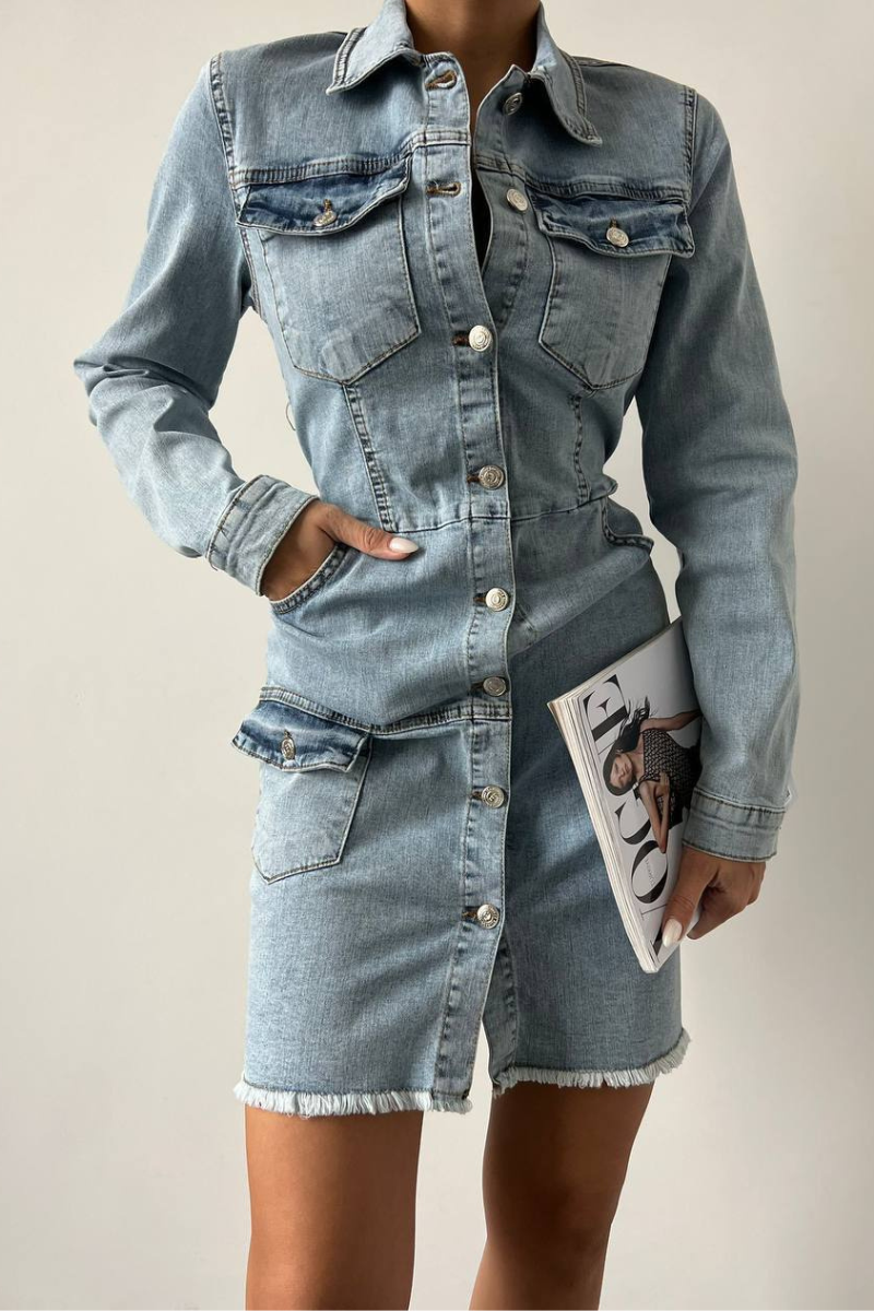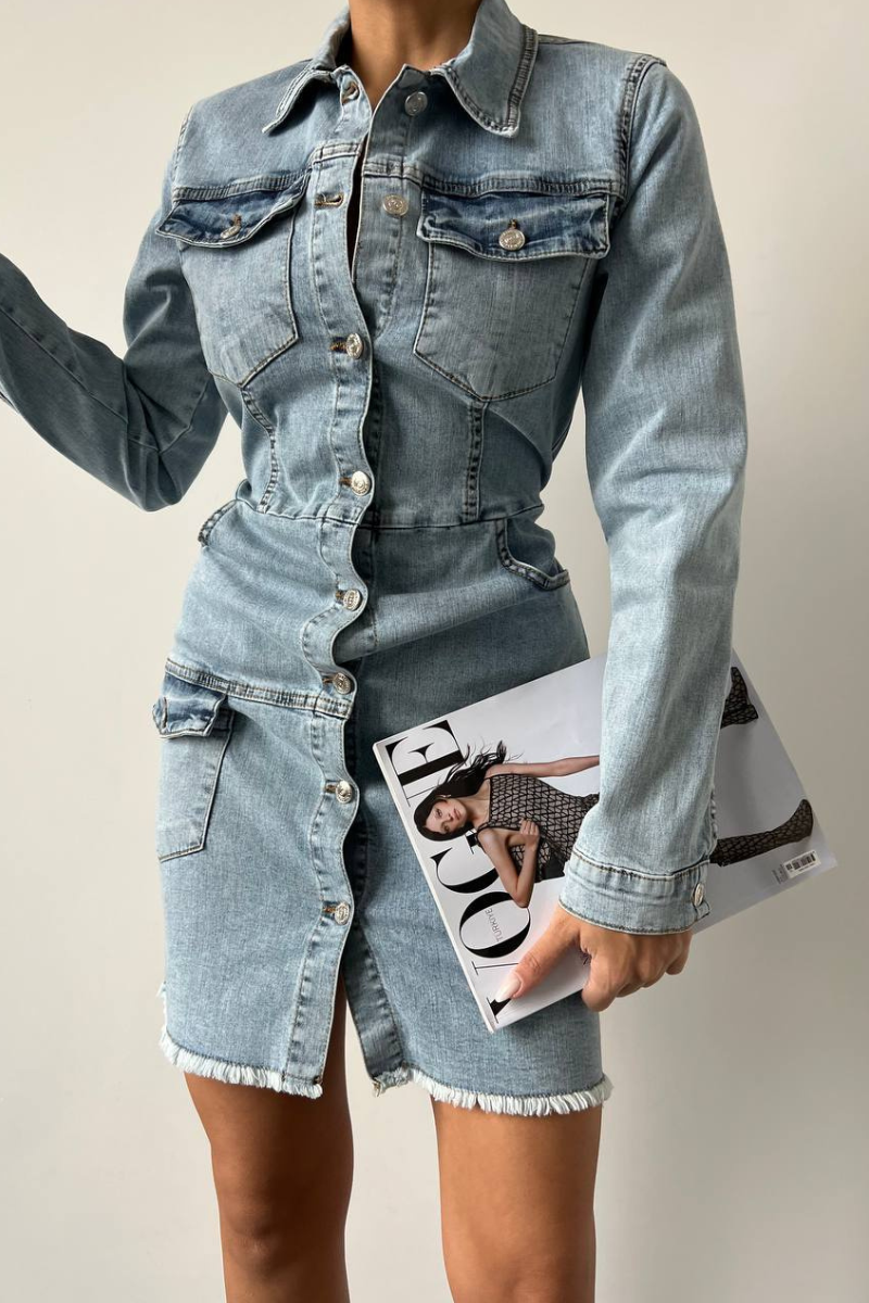 Effortlessly chic, this Denim Button-Down Dress combines classic charm with modern versatility.