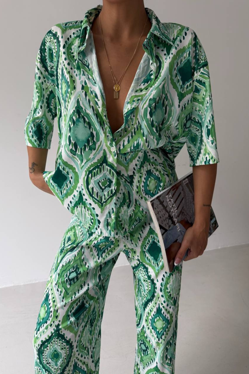 Stand out in style with this Print Style Pants Set, a vibrant two-piece ensemble that blends comfort with bold design.