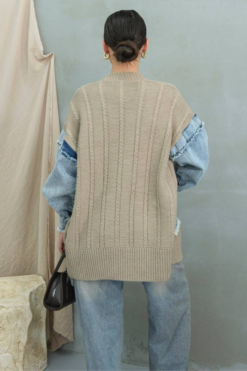 A perfect blend of cozy knit and timeless denim, this Denim Mix Cardigan adds a modern twist to classic layering.