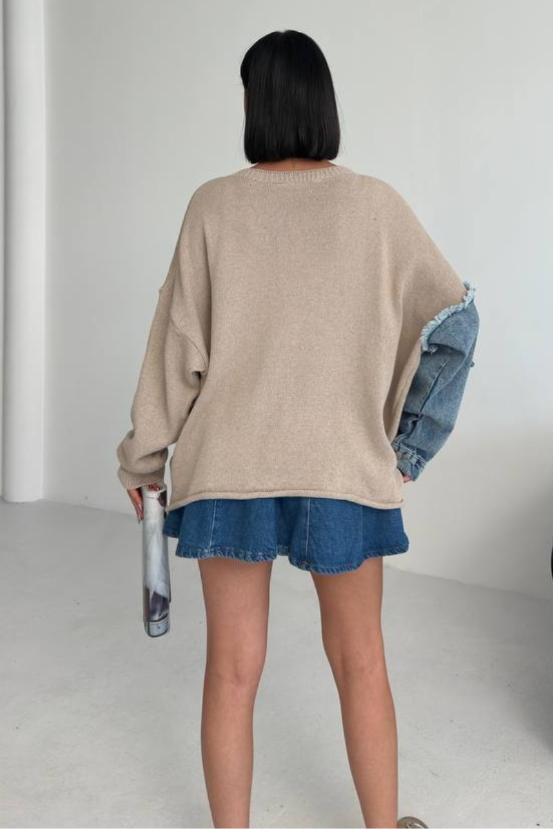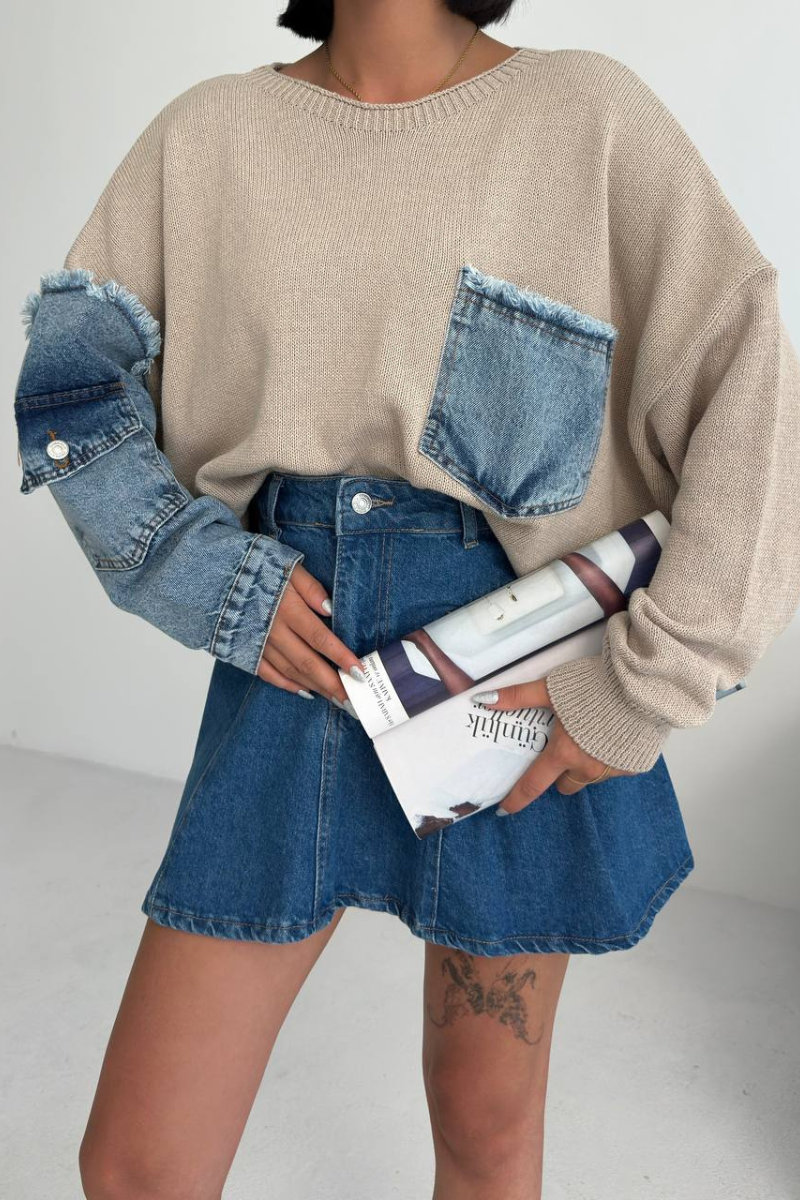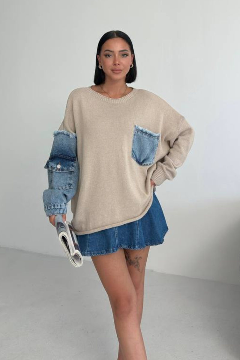 A contemporary blend of cozy knit and denim accents, the Denim Mix Sweater brings comfort with an urban edge. Perfect for layering, it adds effortless style to both casual and chic looks.