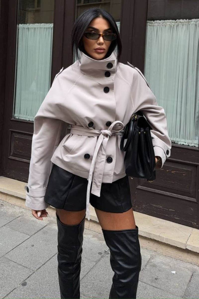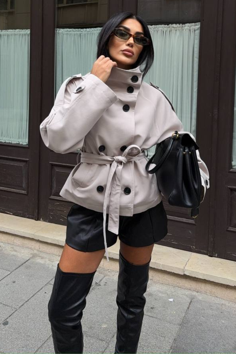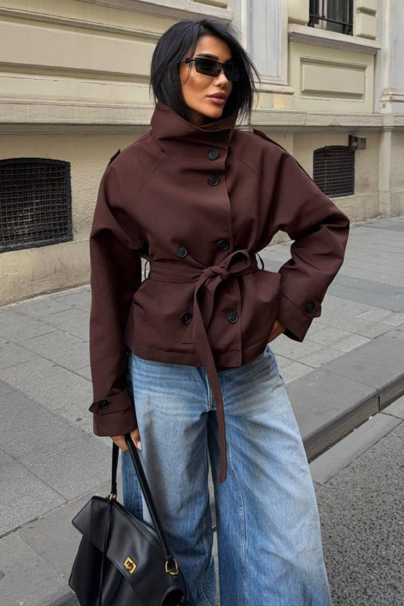 Elevate your outerwear with this chic Notched Neck Belted Jacket.