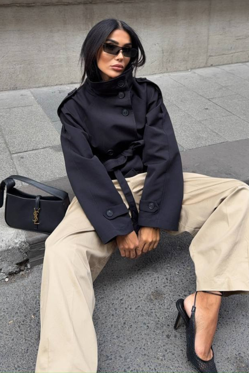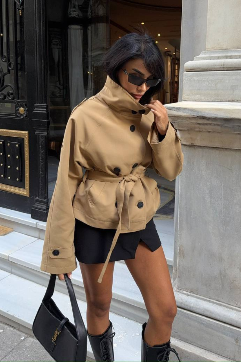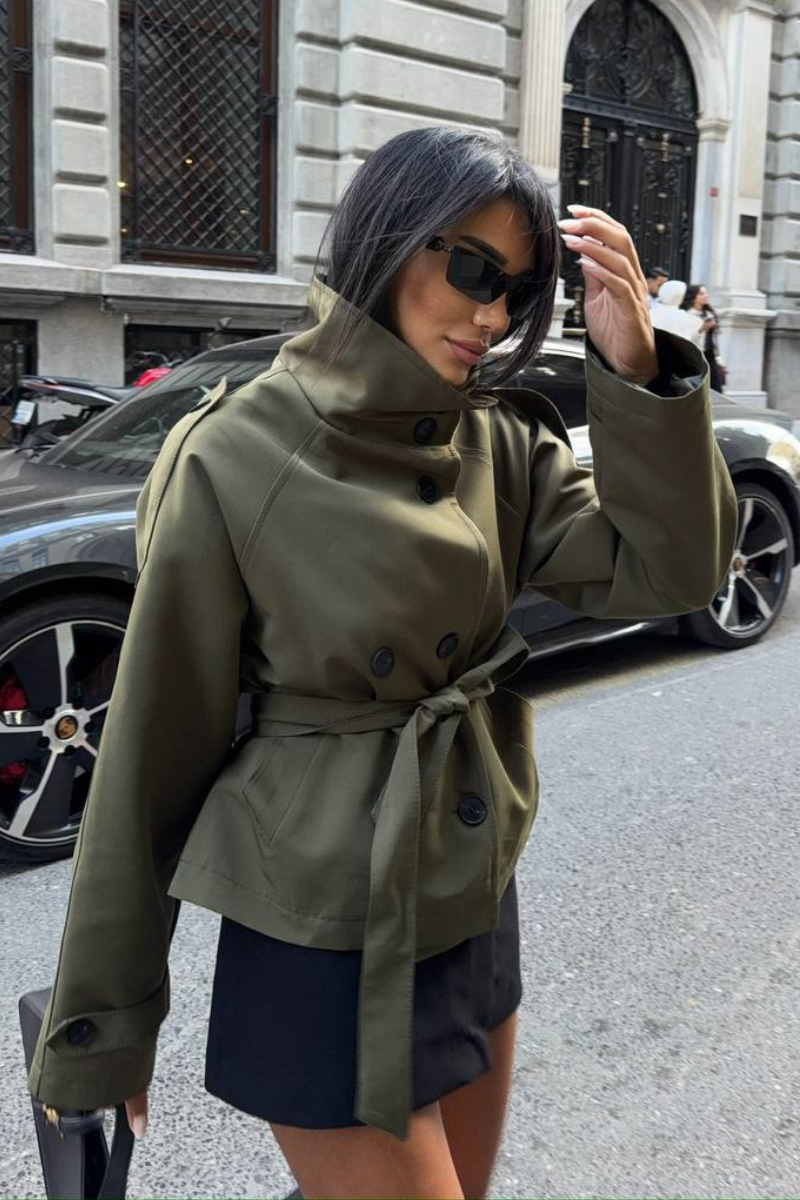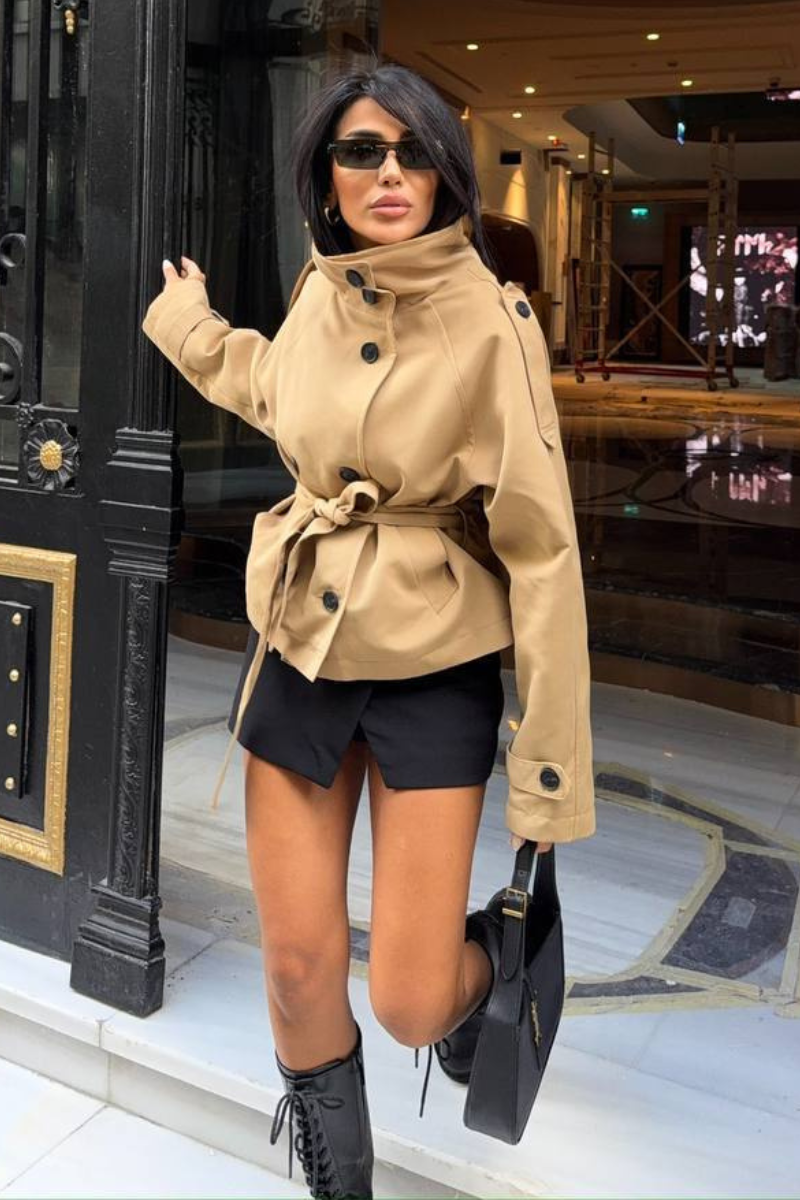 Elevate your outerwear with this chic Notched Neck Belted Jacket.