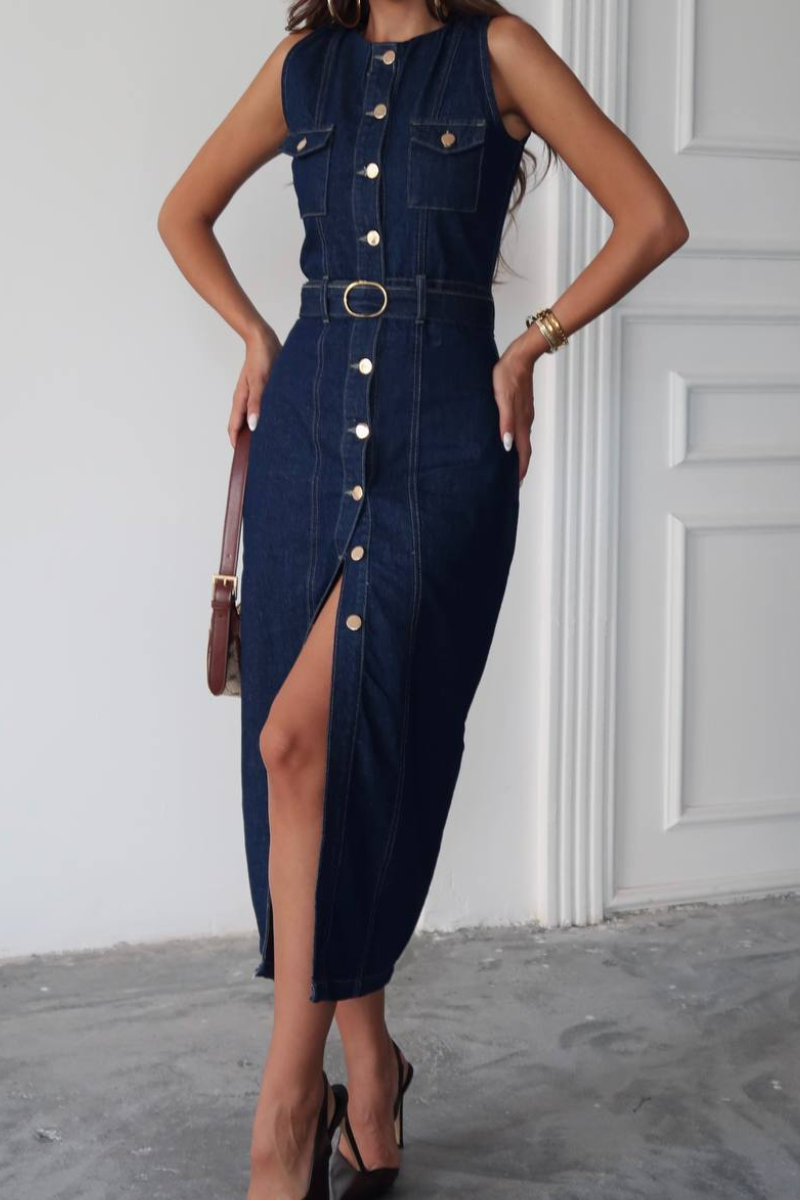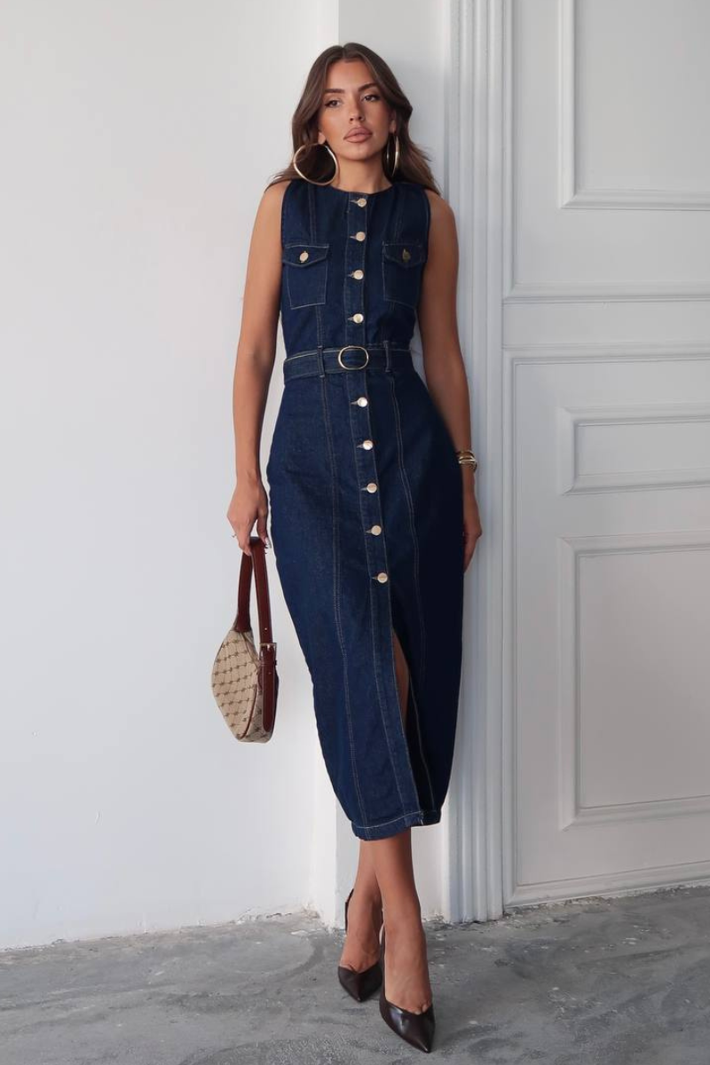 Effortlessly stylish and endlessly versatile, this Denim Midi Dress is a wardrobe staple.