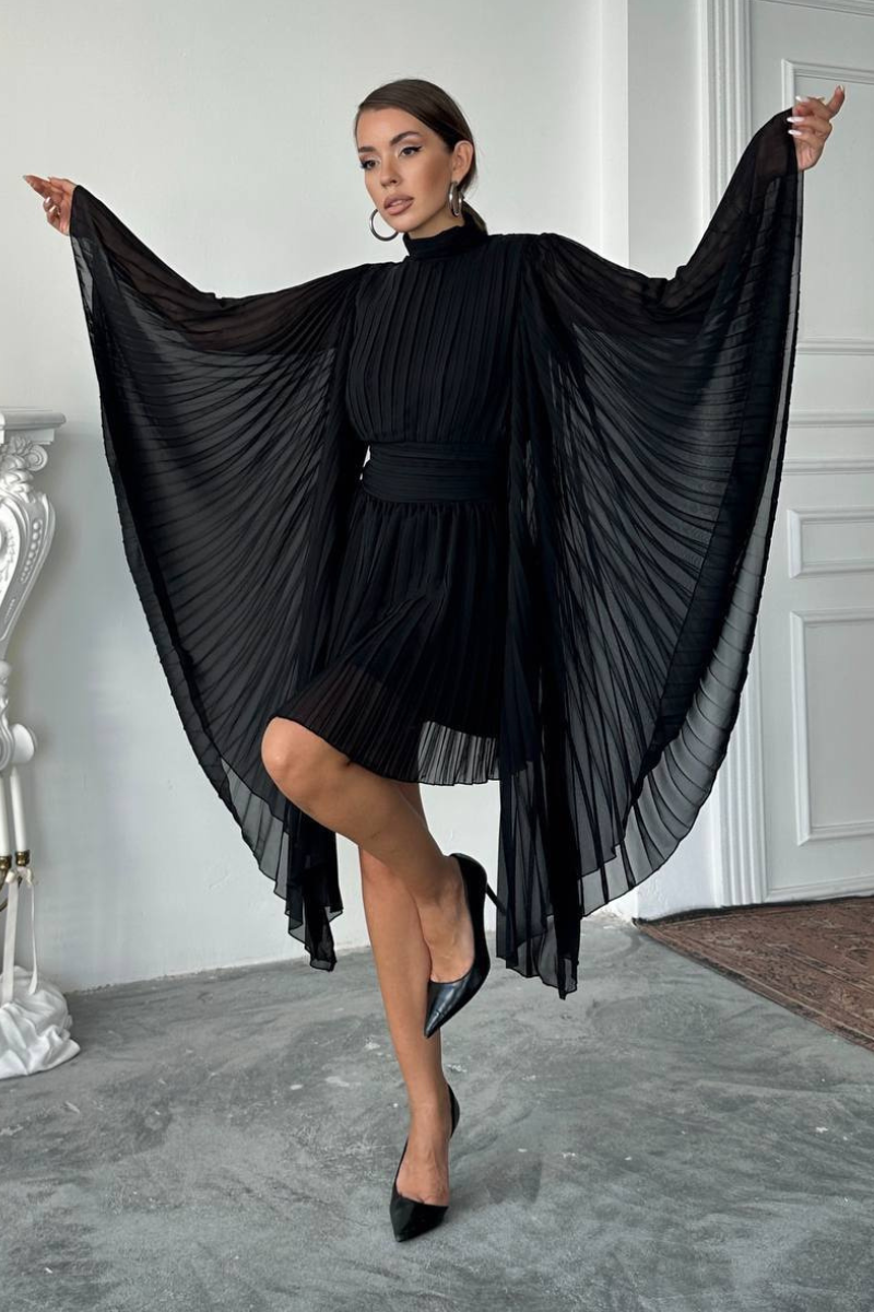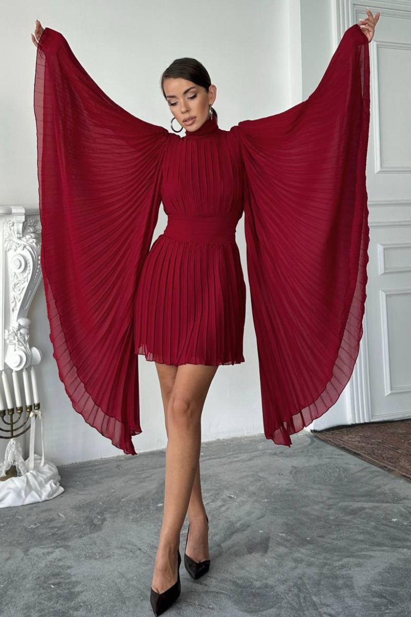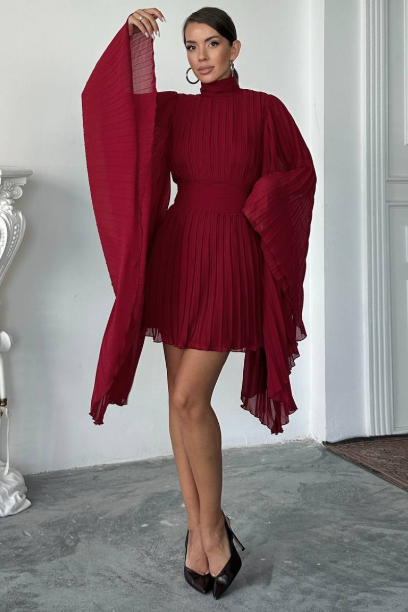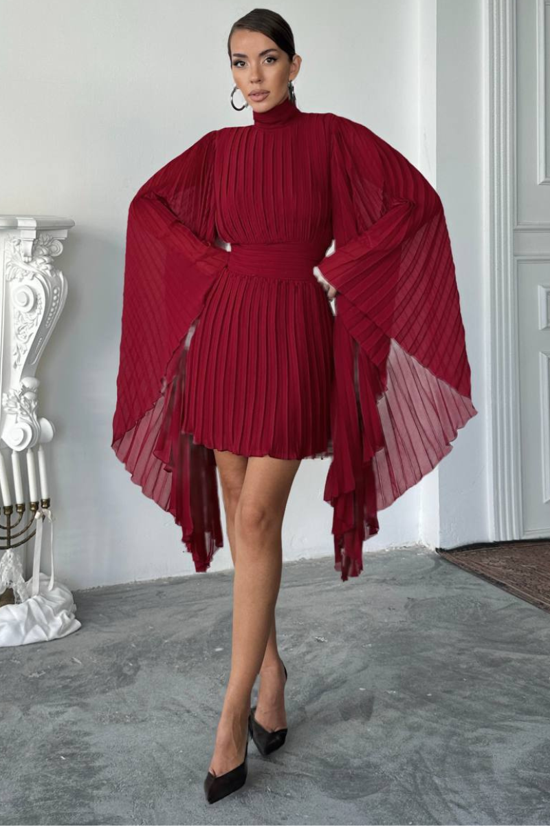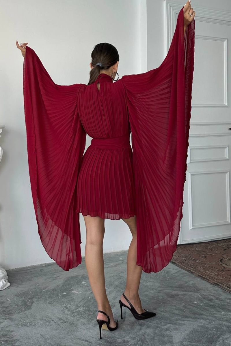 Make a graceful statement with our Flare-Arm Pleated Dress-a perfect blend of elegance and ease.