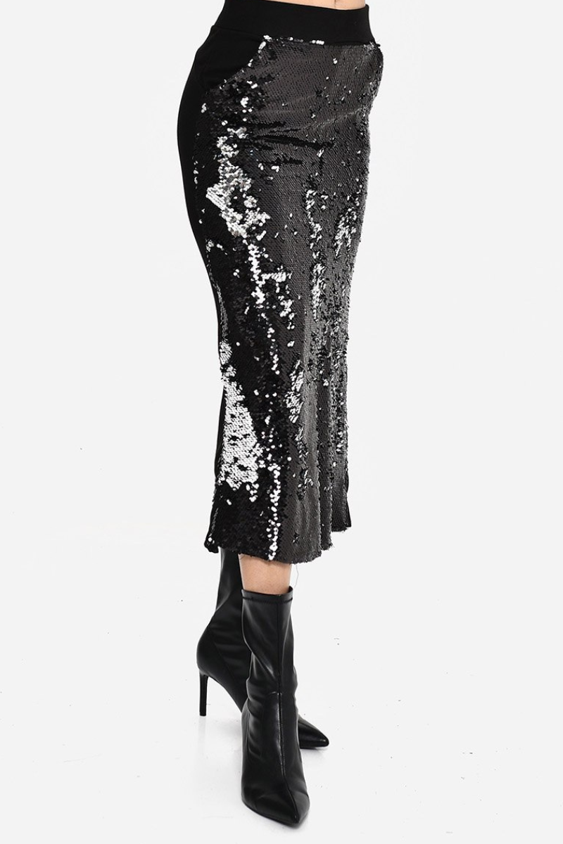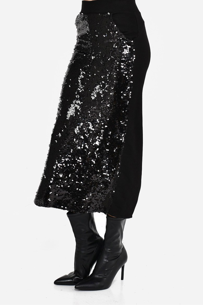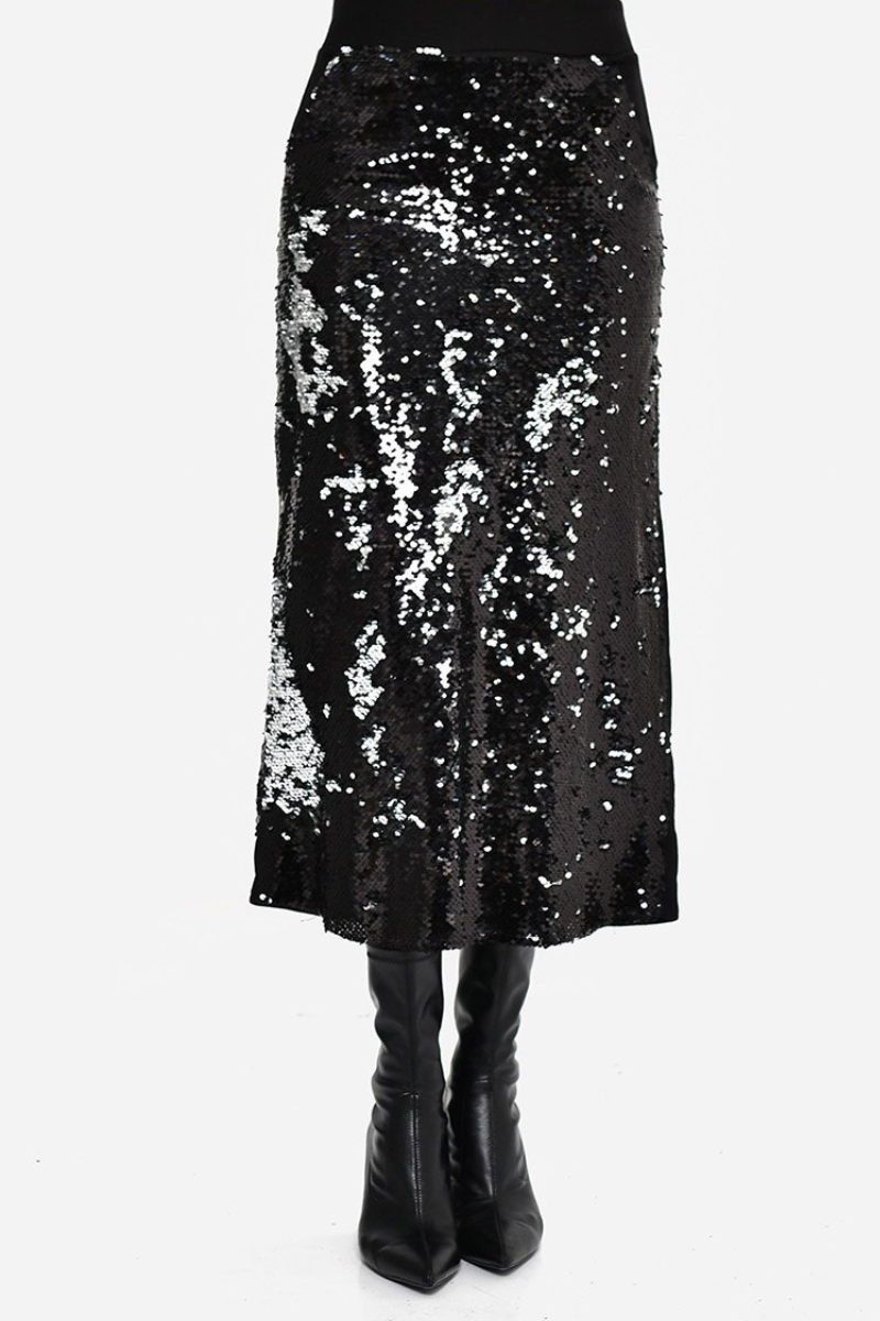 Shimmer with sophistication in this high-quality sequin midi skirt.