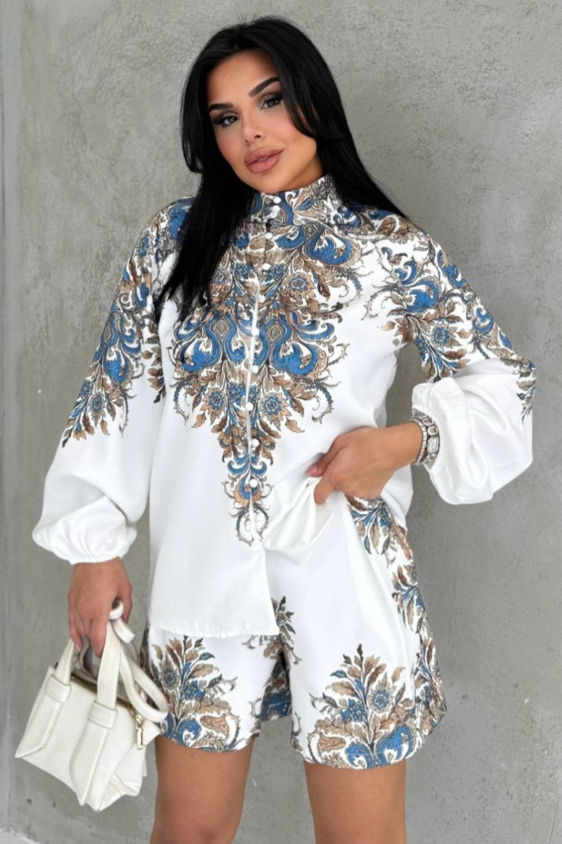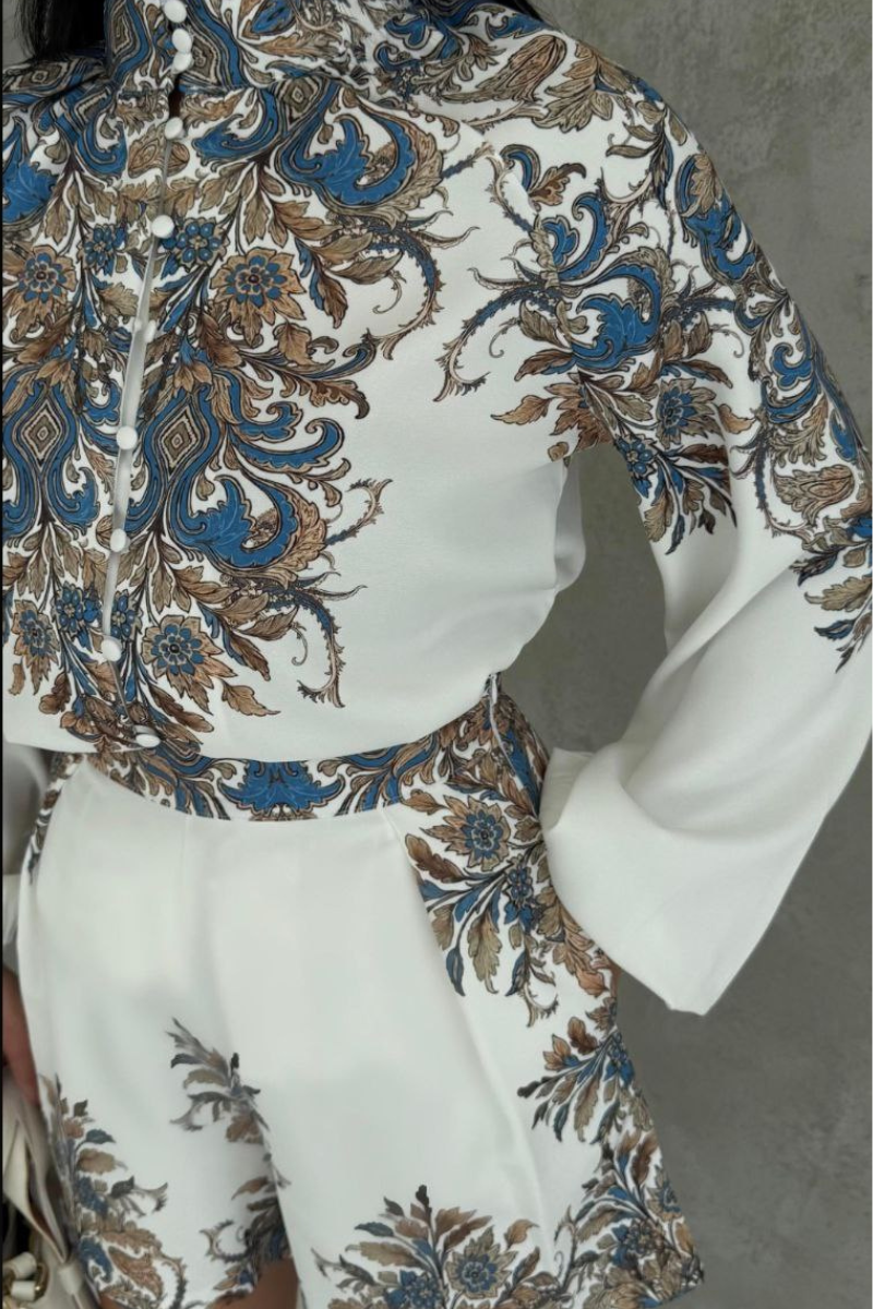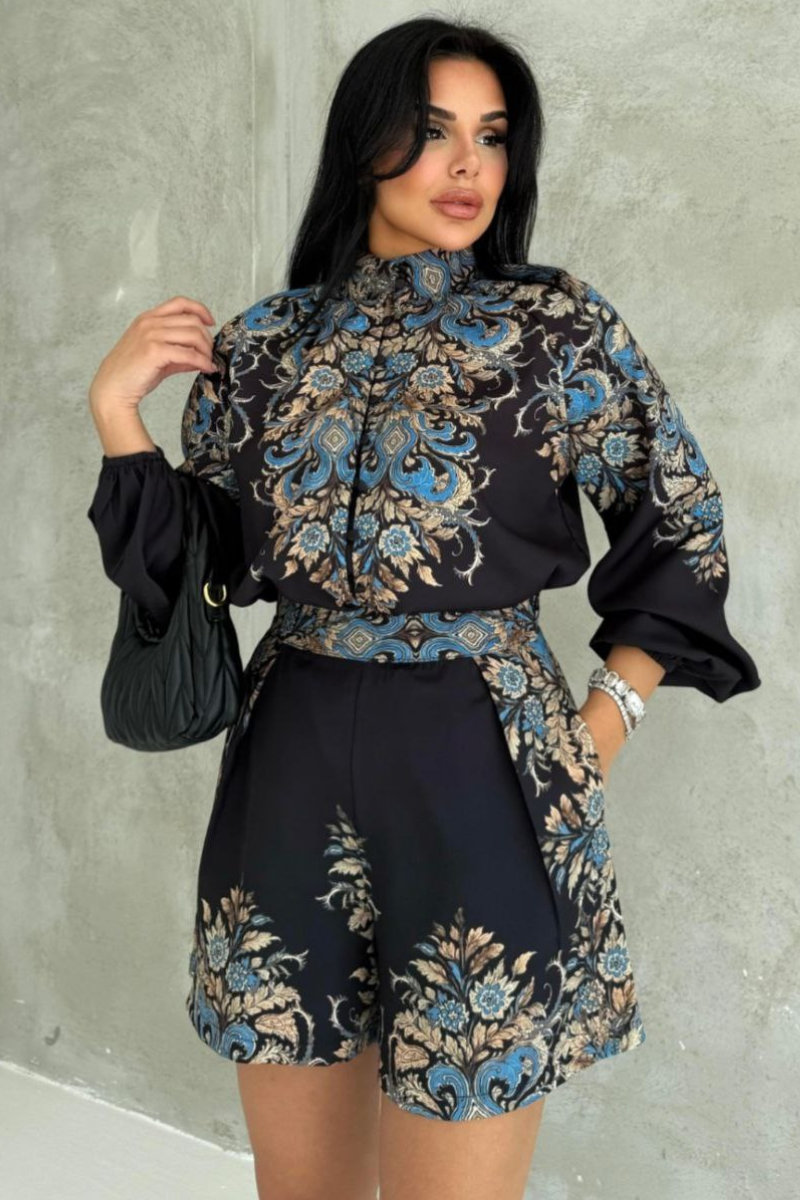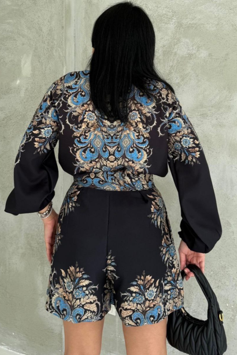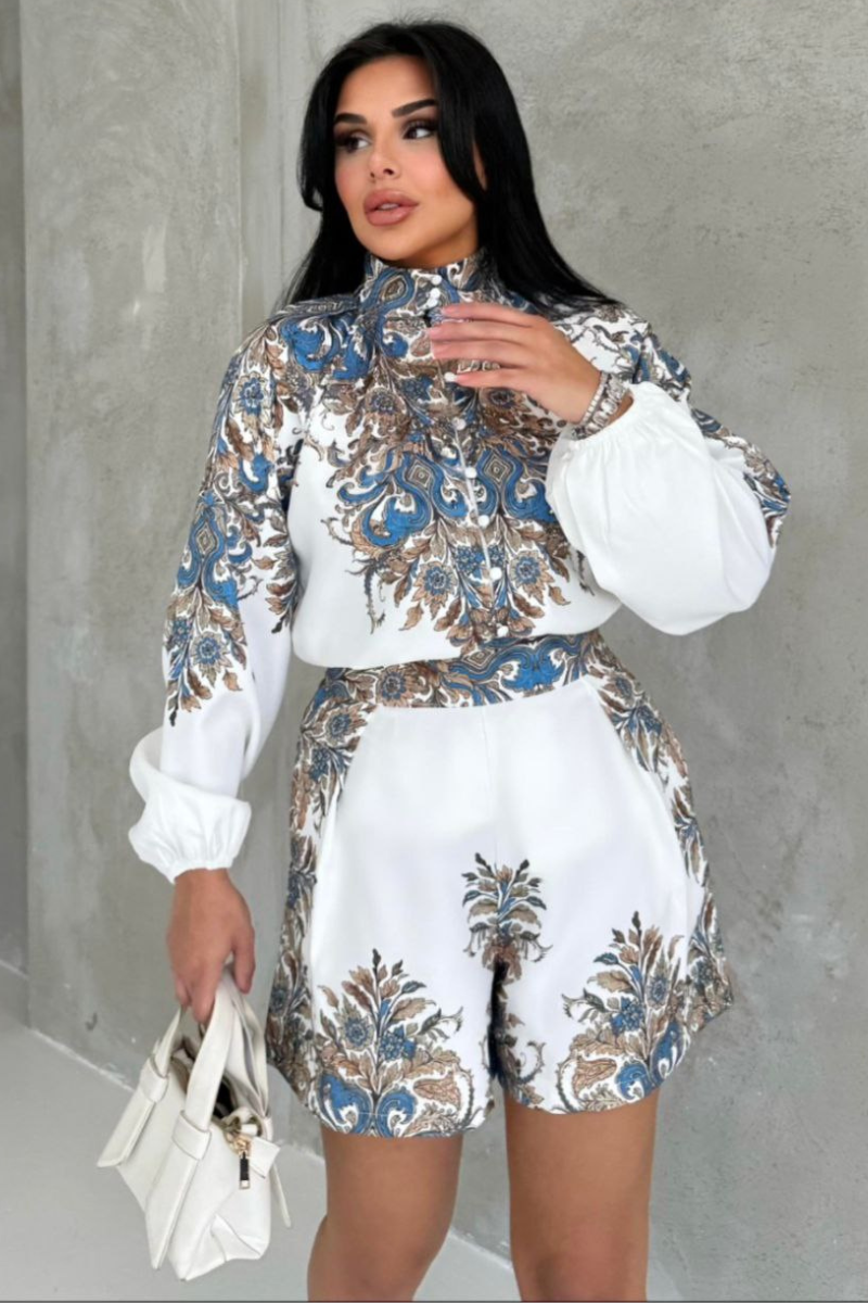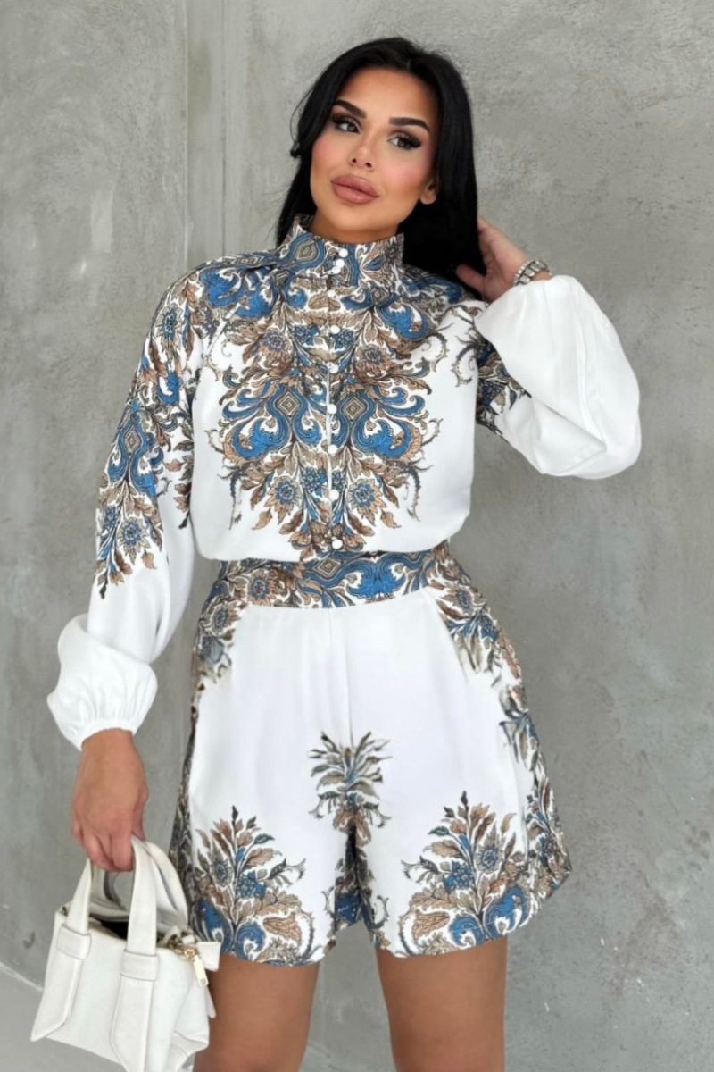 Add a touch of boho-chic to your wardrobe with this paisley print shorts set.