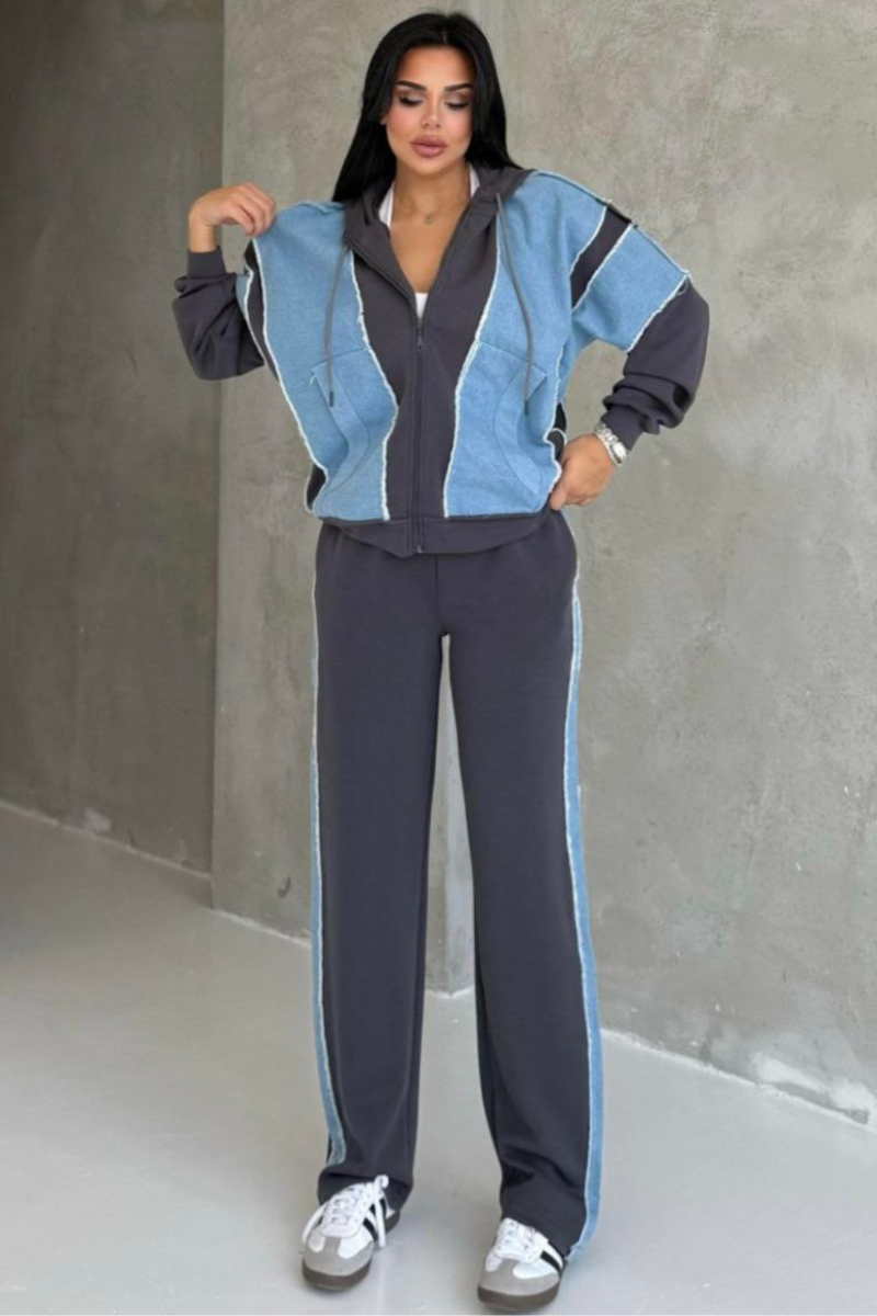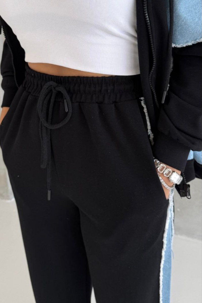 Step into casual chic with this denim jogger pants set, designed for a perfect balance of comfort and style.