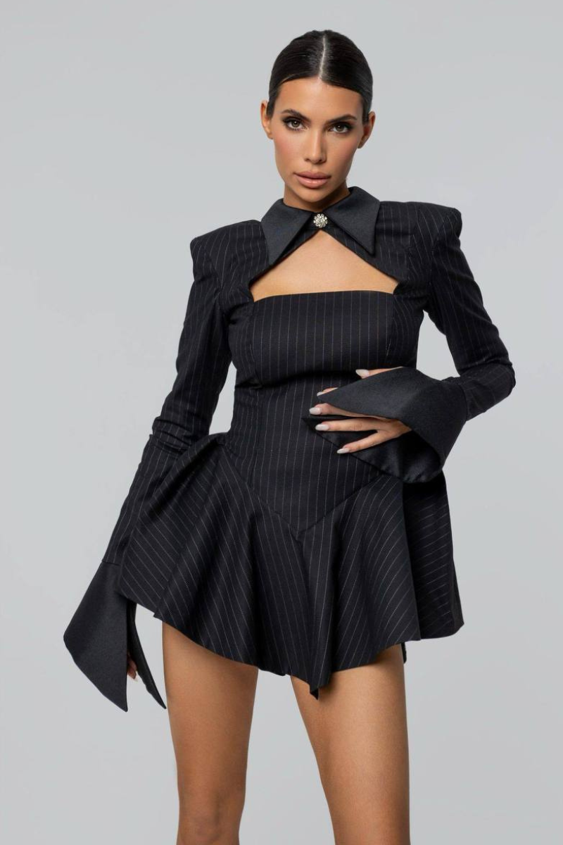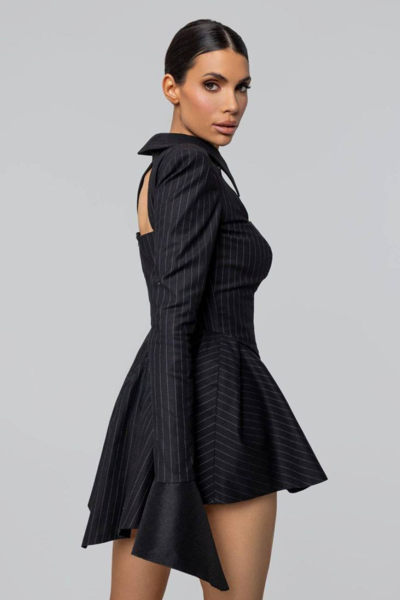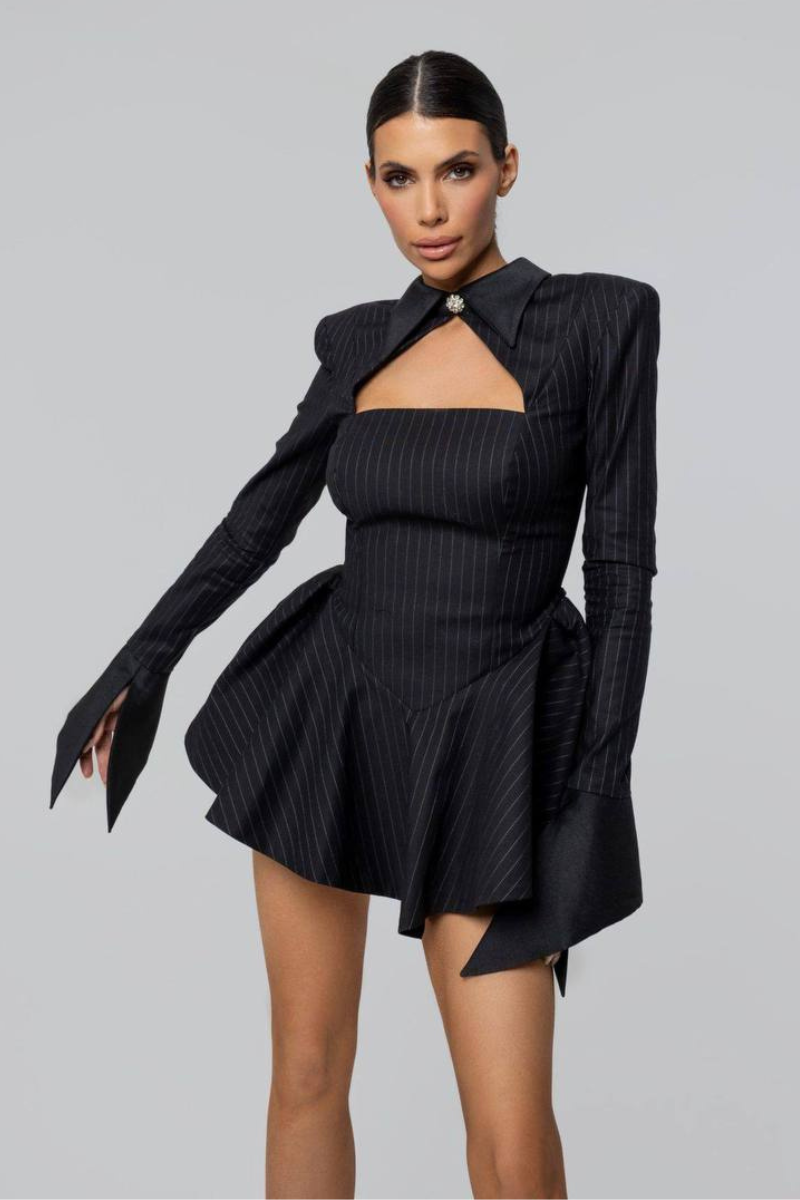 Sophisticated and sleek, this Pinstriped Long Sleeve Dress is a modern take on classic tailoring.