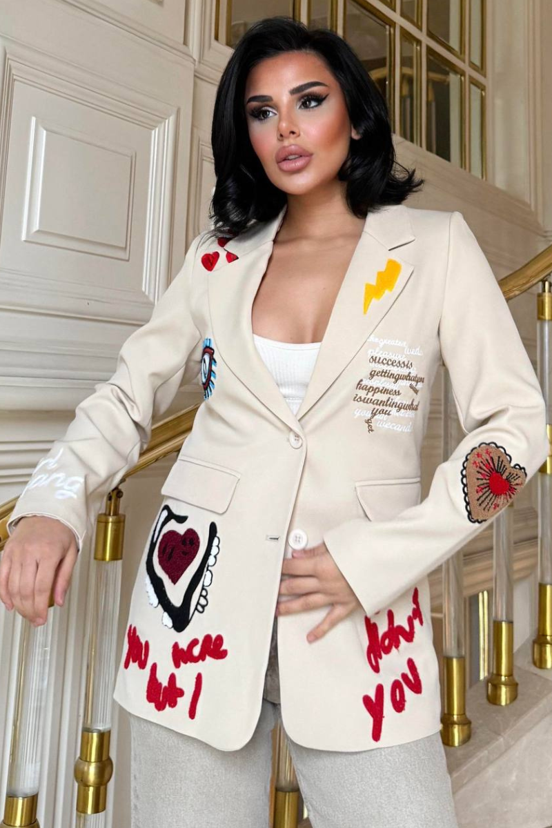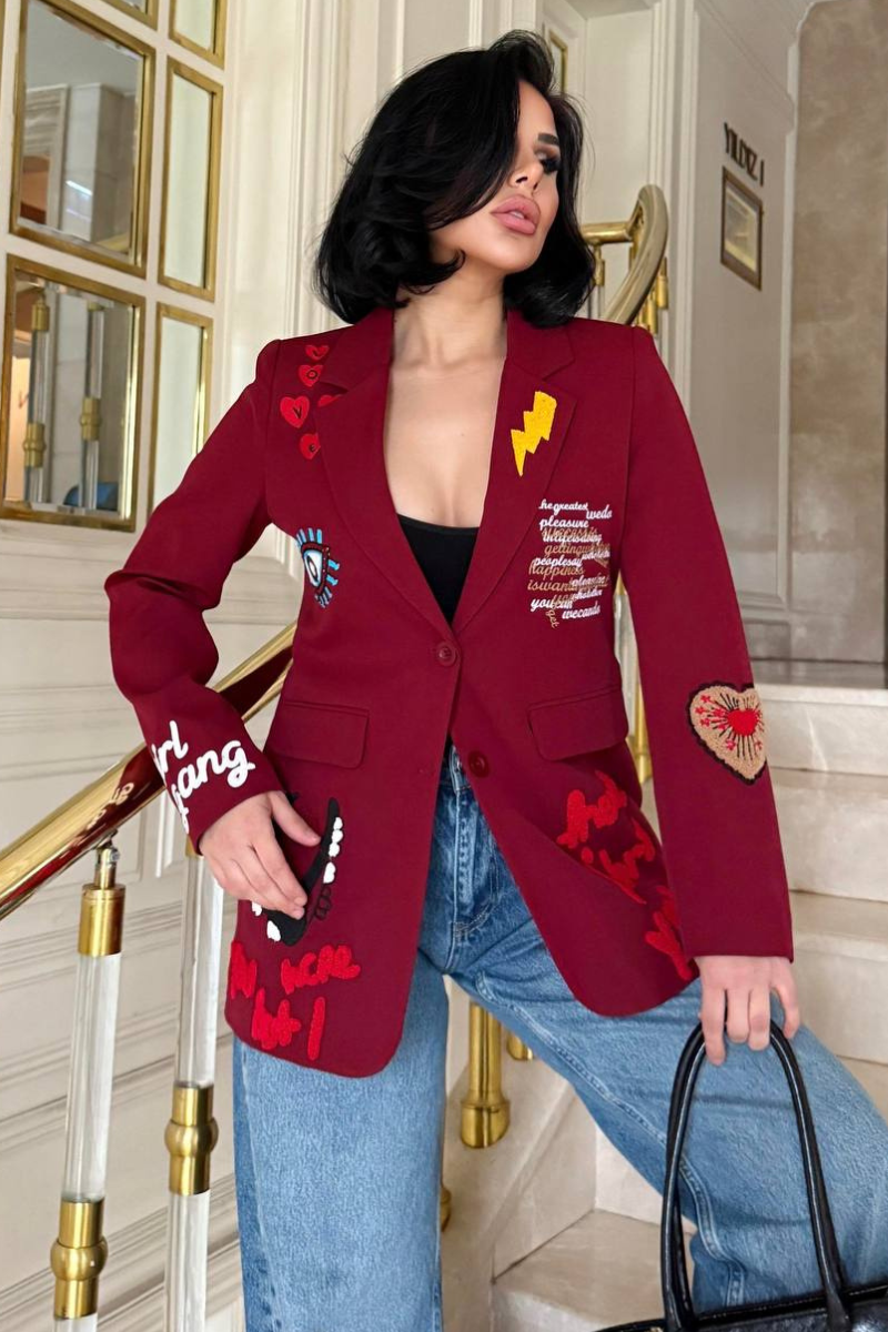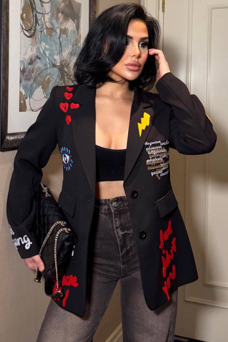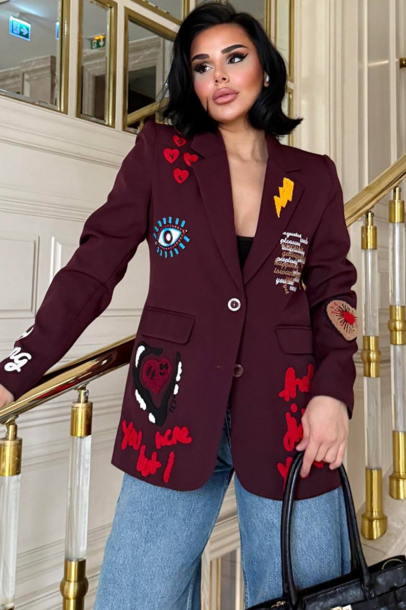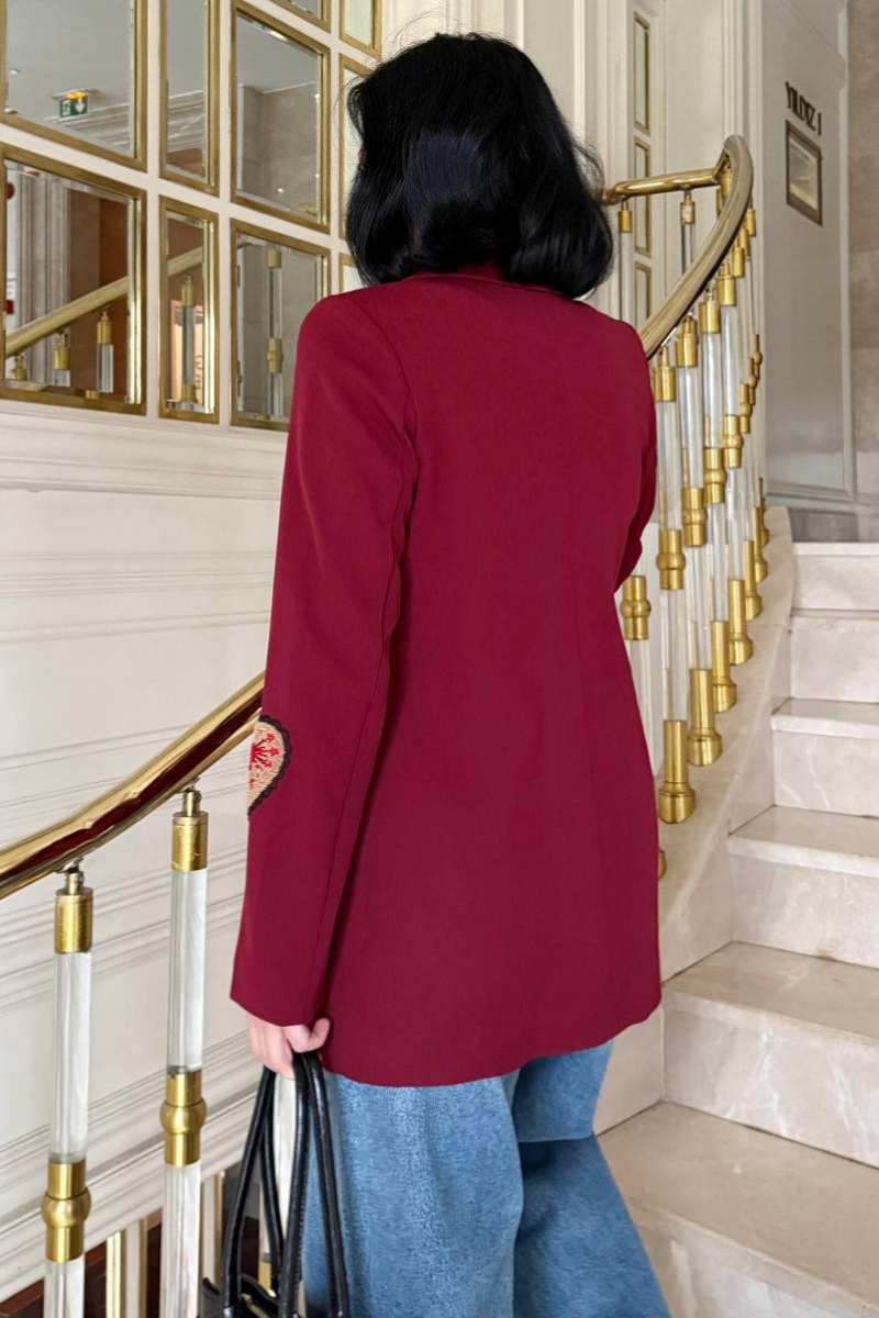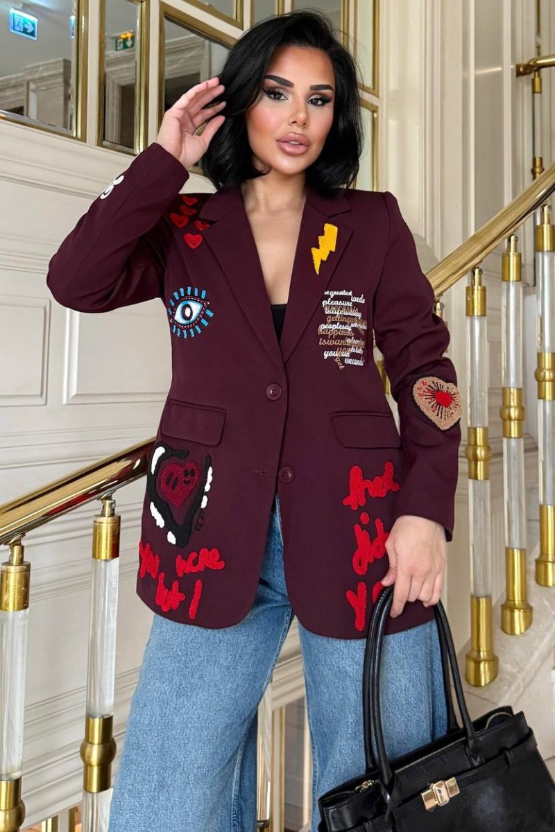A chic, tailored blazer with elegant embroidery for a sleek, sophisticated look.