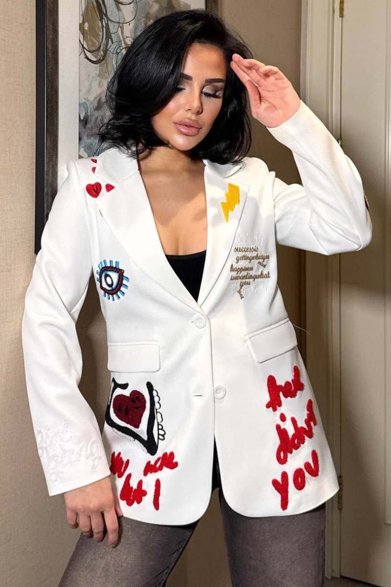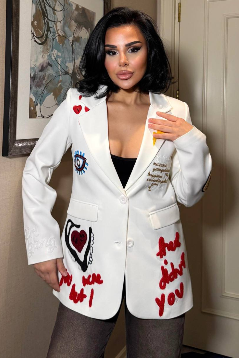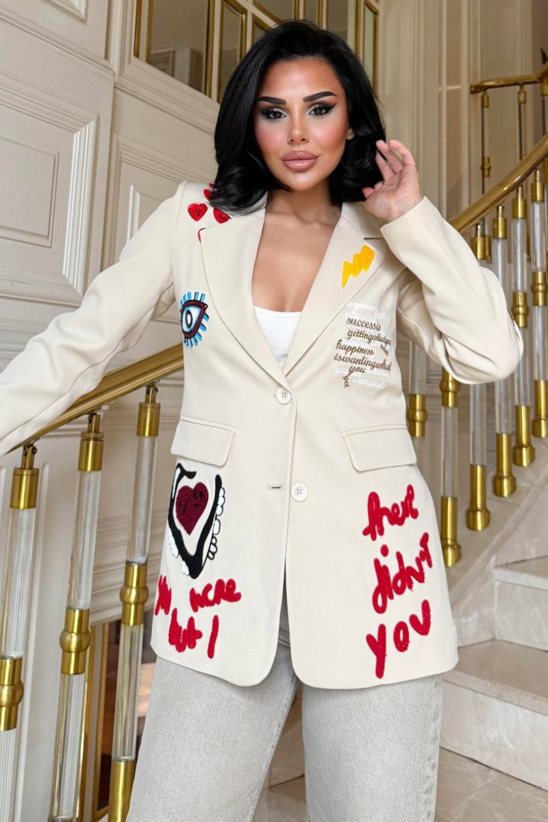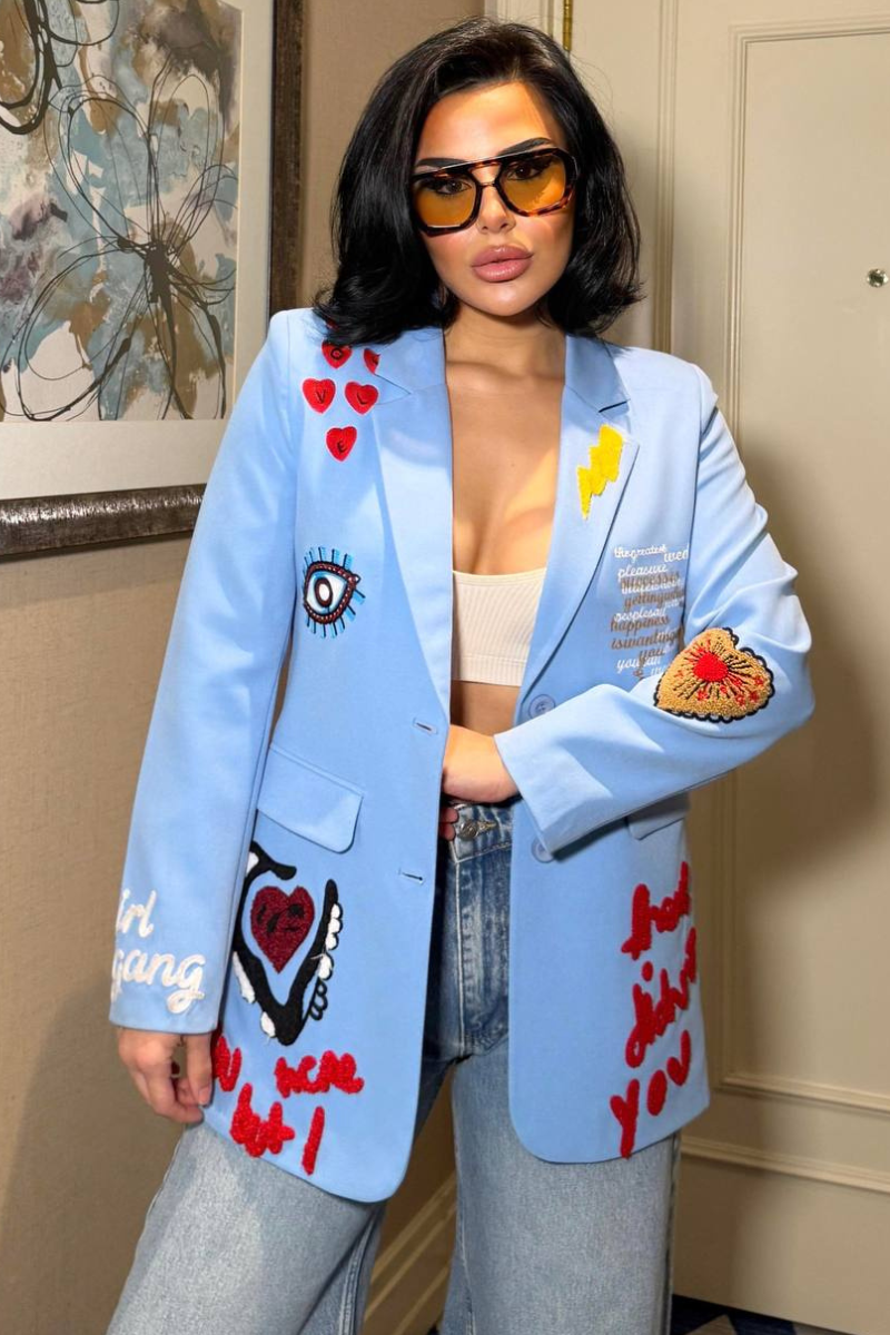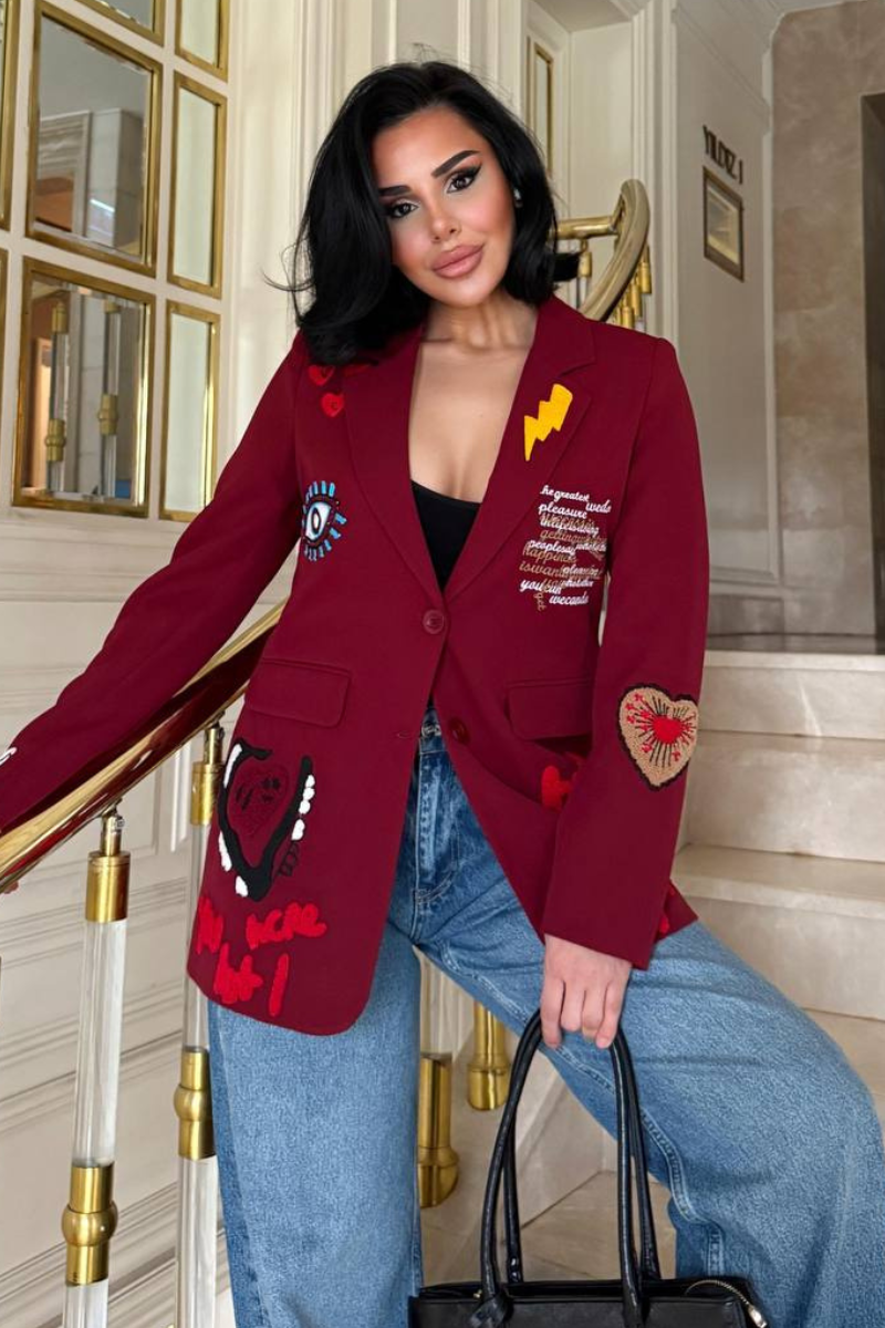 A chic, tailored blazer with elegant embroidery for a sleek, sophisticated look.