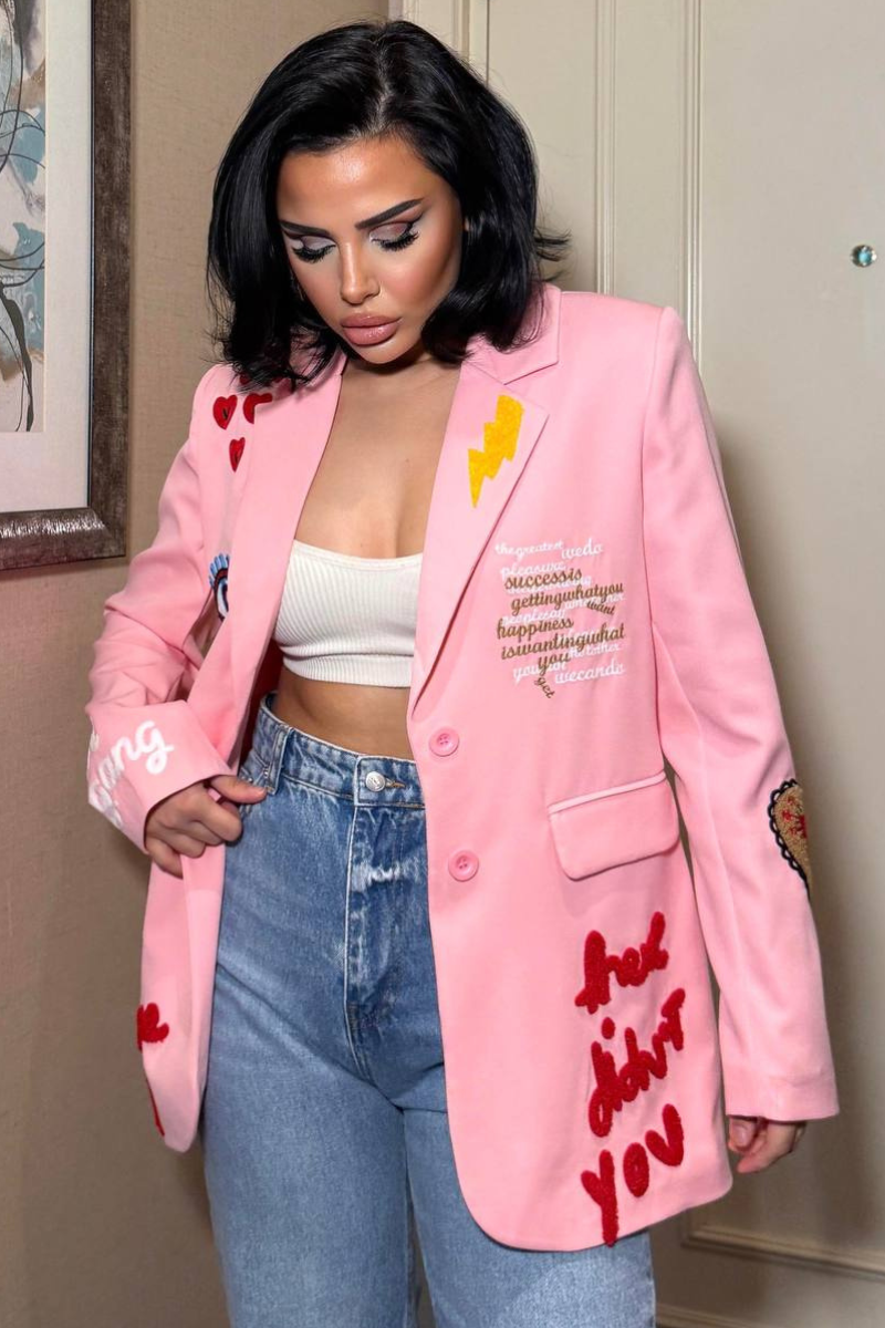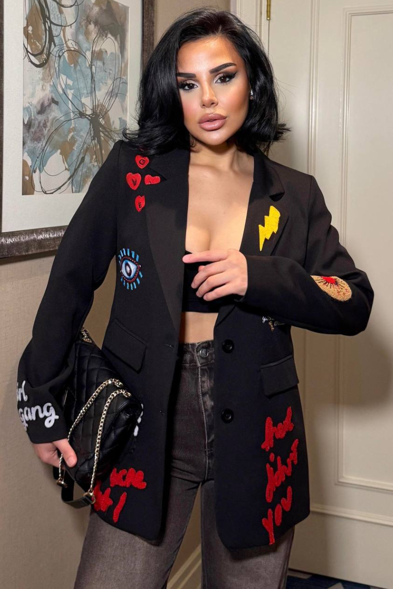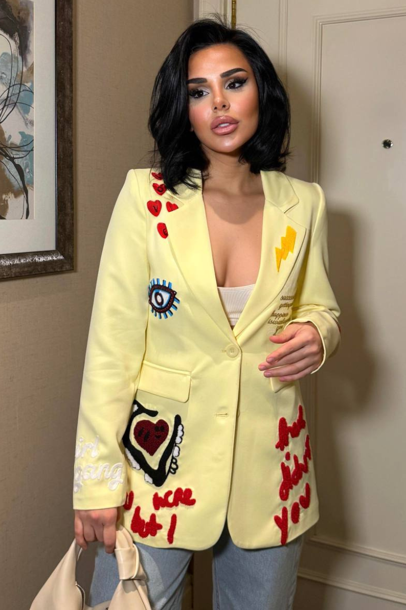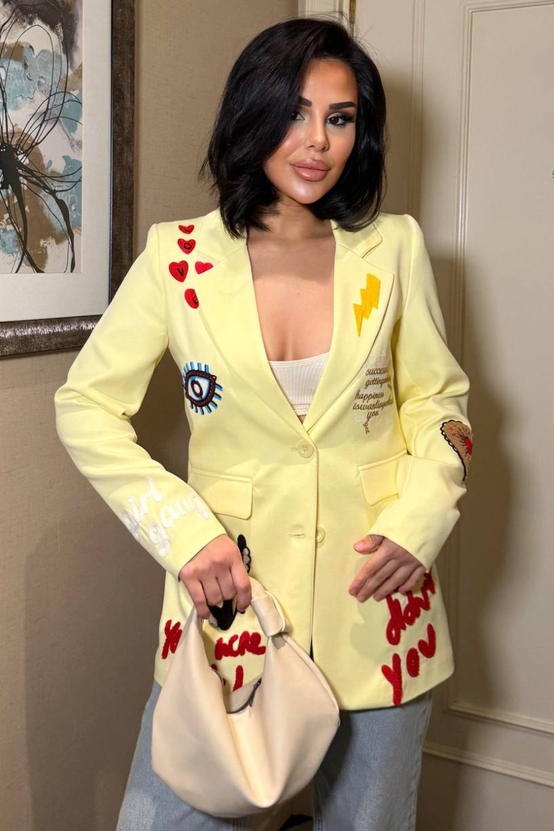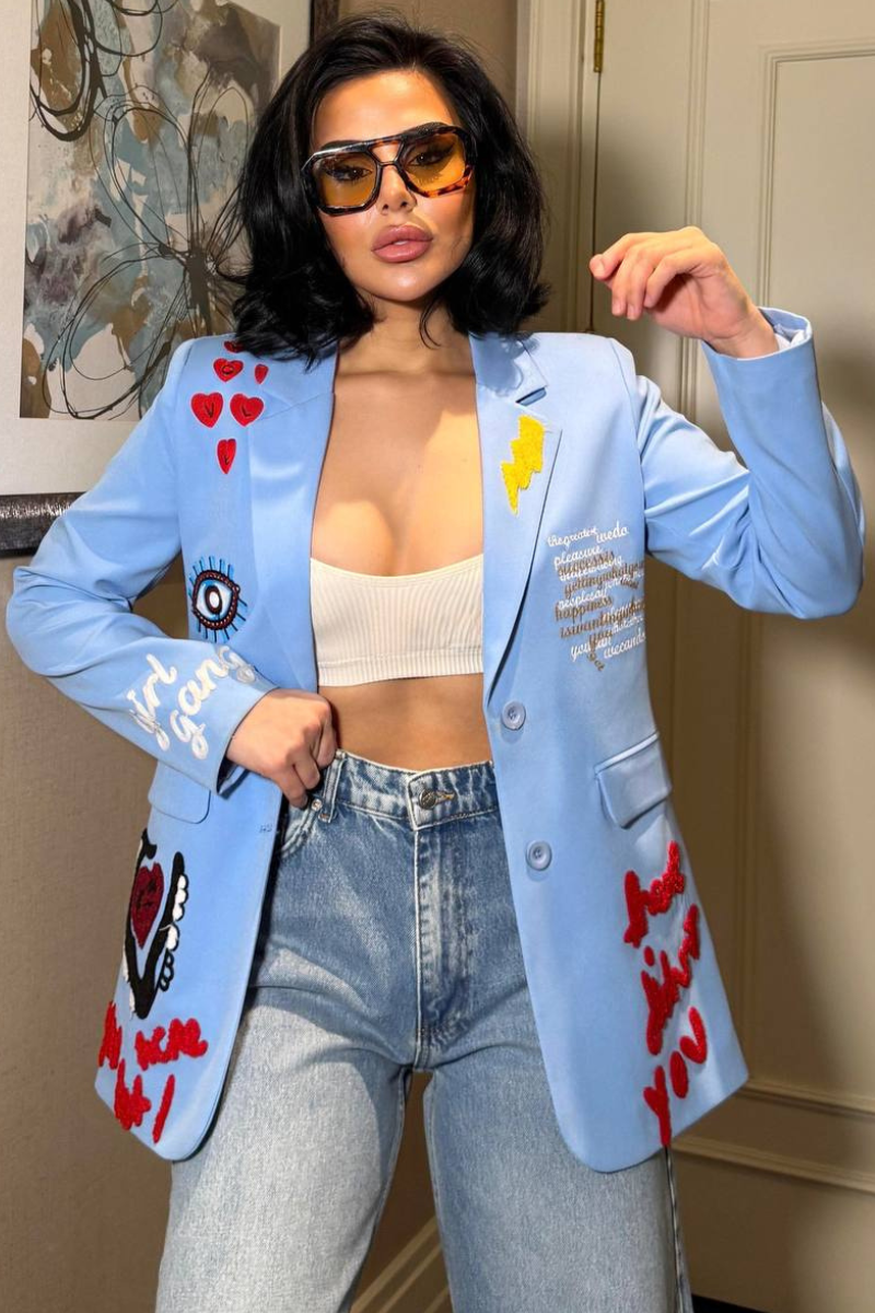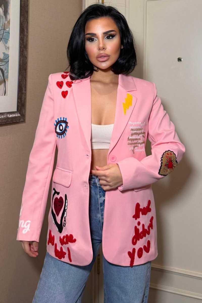 A chic, tailored blazer with elegant embroidery for a sleek, sophisticated look.