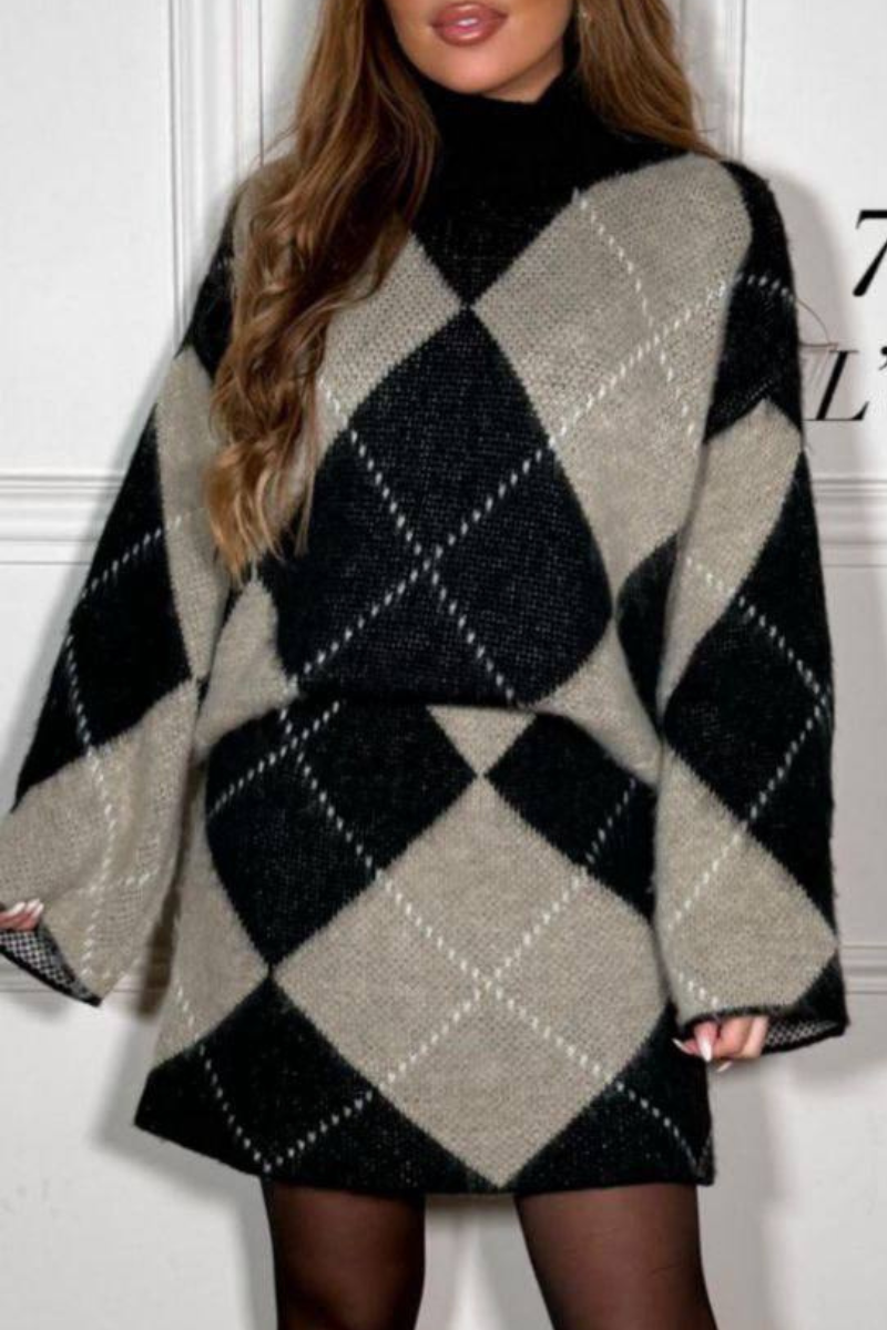 A versatile two-piece set featuring a cozy sweater and a matching skirt.