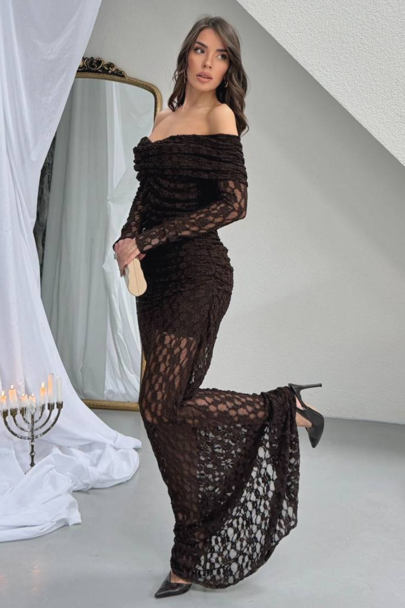 An elegant floor-length dress crafted with delicate lace for a timeless, feminine look.