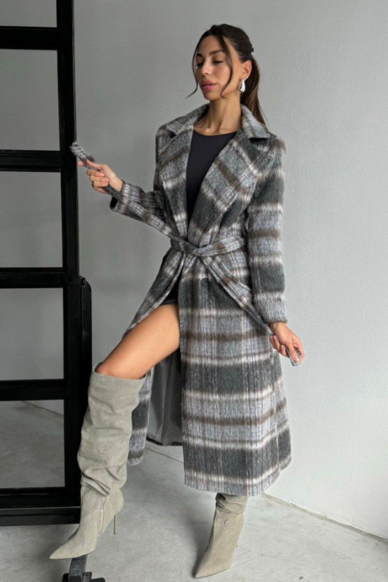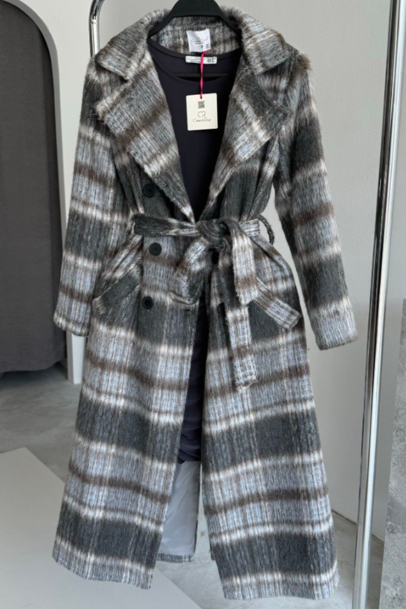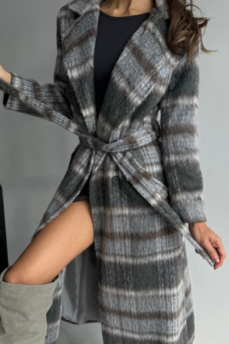 Stay warm and stylish in this timeless plaid coat, perfect for layering through the colder seasons.