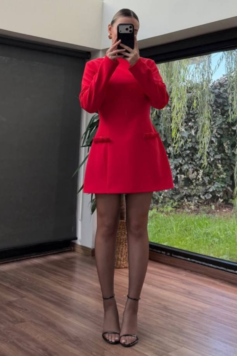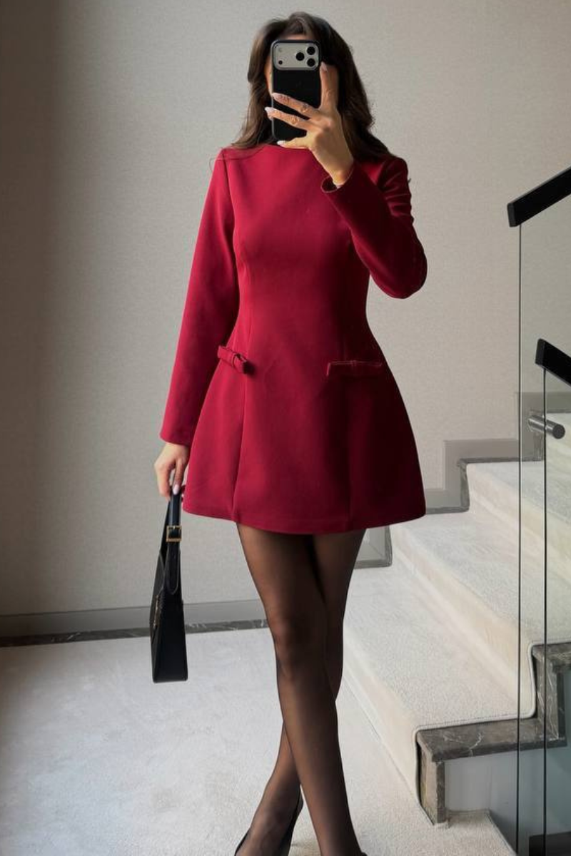 Elevate your look with this structured mini dress, featuring a flattering silhouette and a refined bow accent for a touch of elegance.