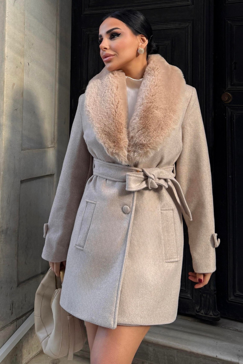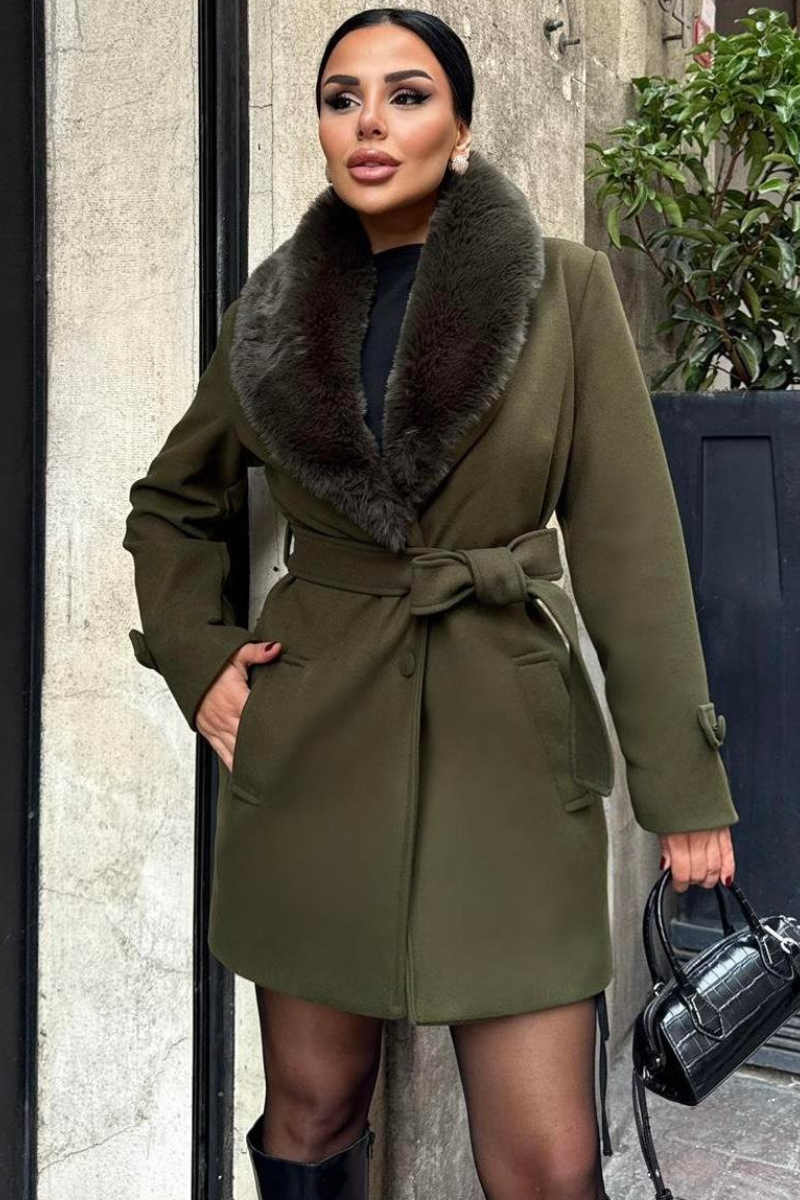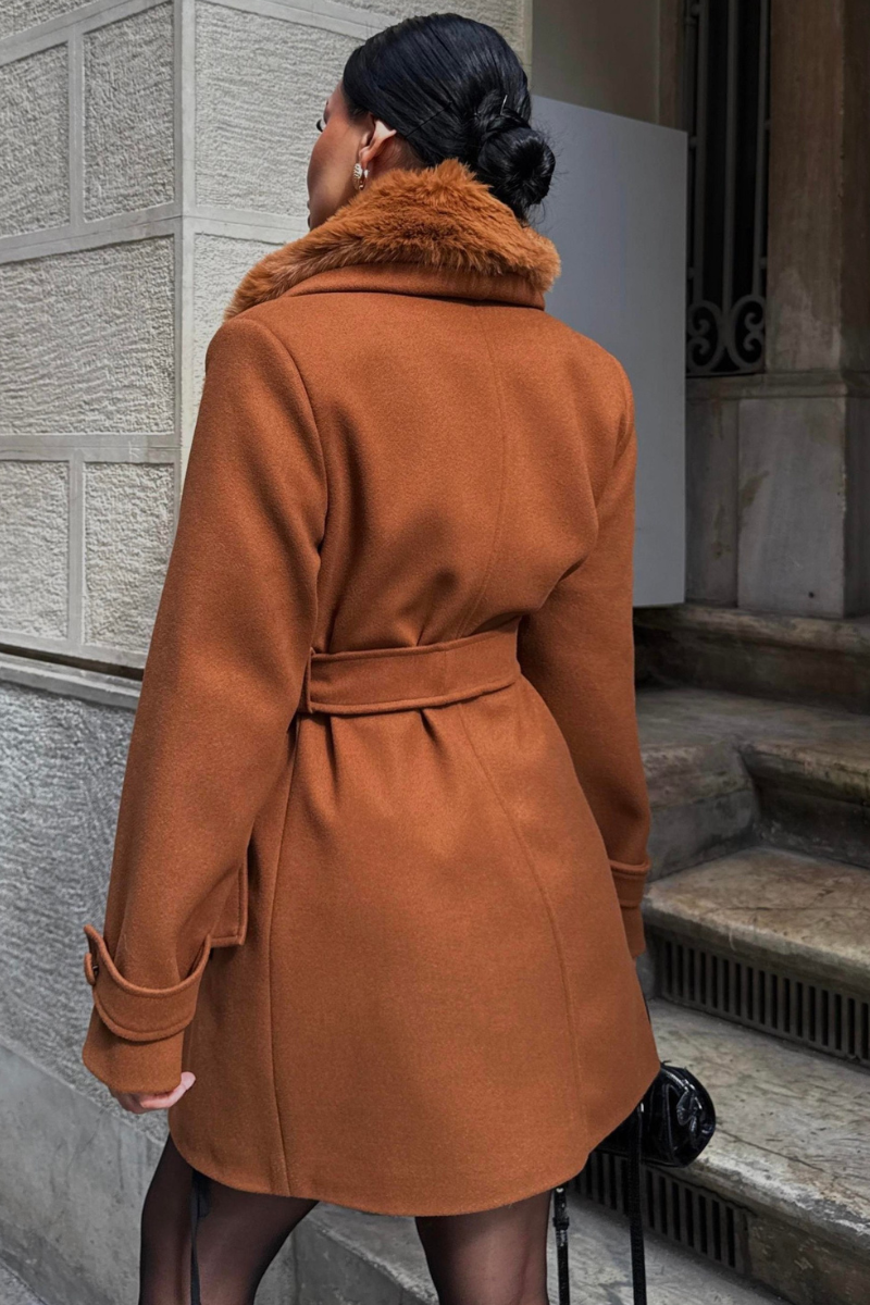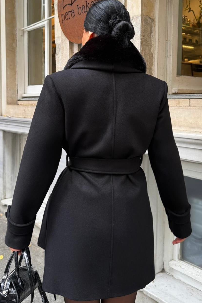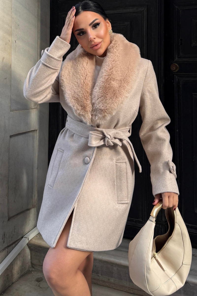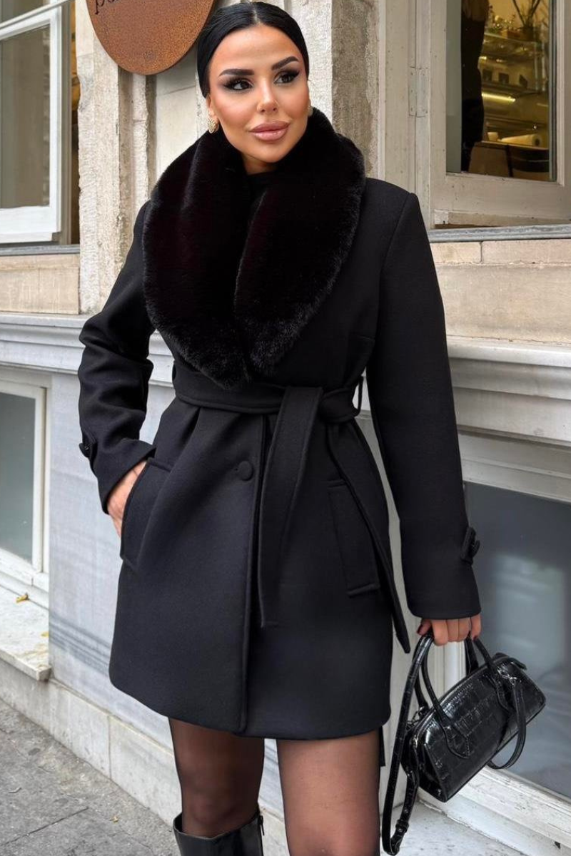 Chic mid-length coat with a soft faux fur collar — warm, stylish, and perfect for polished winter outfits.
