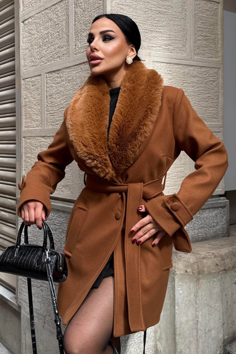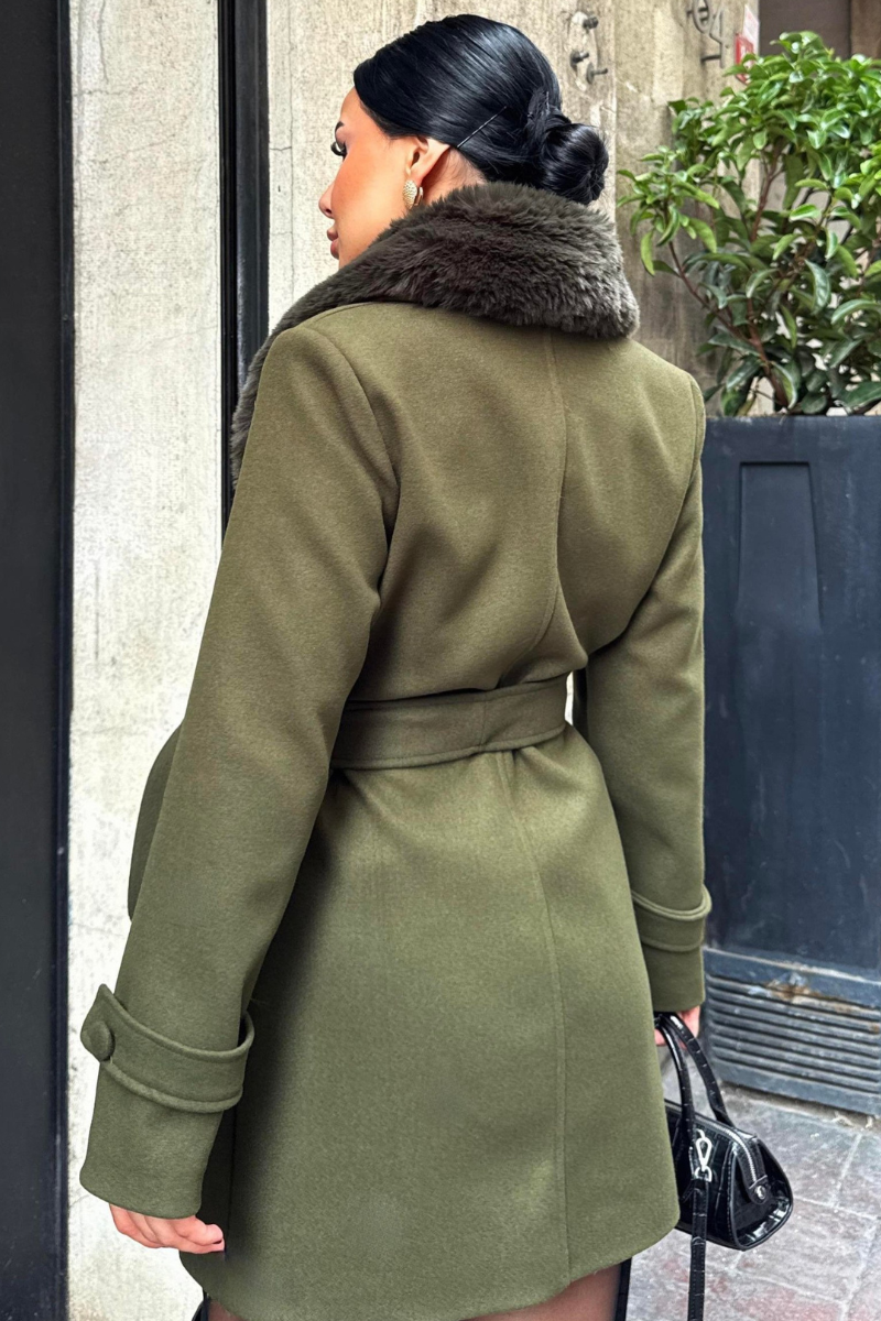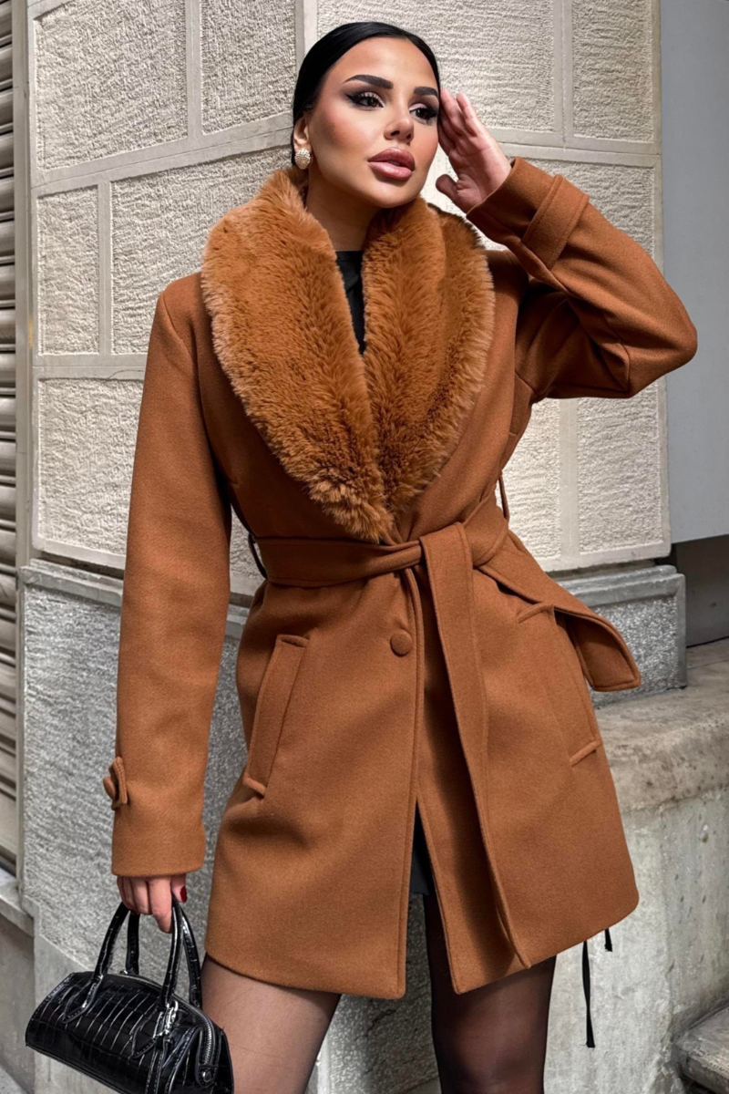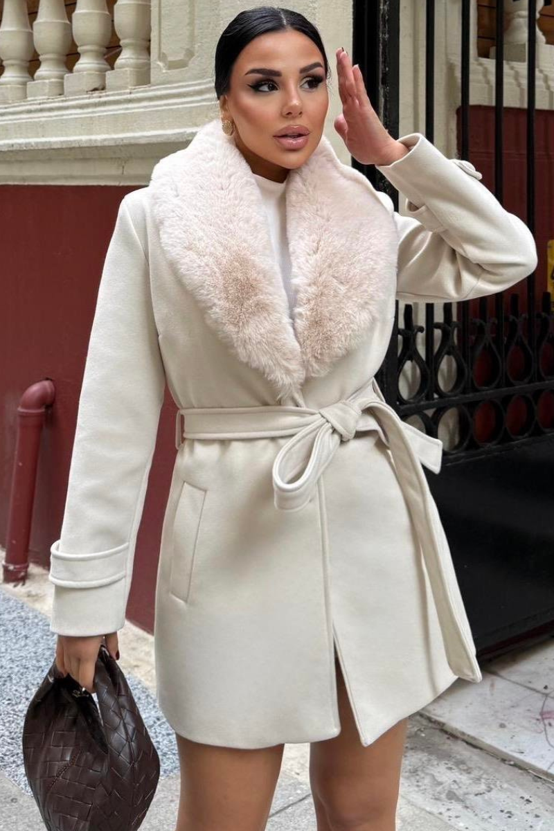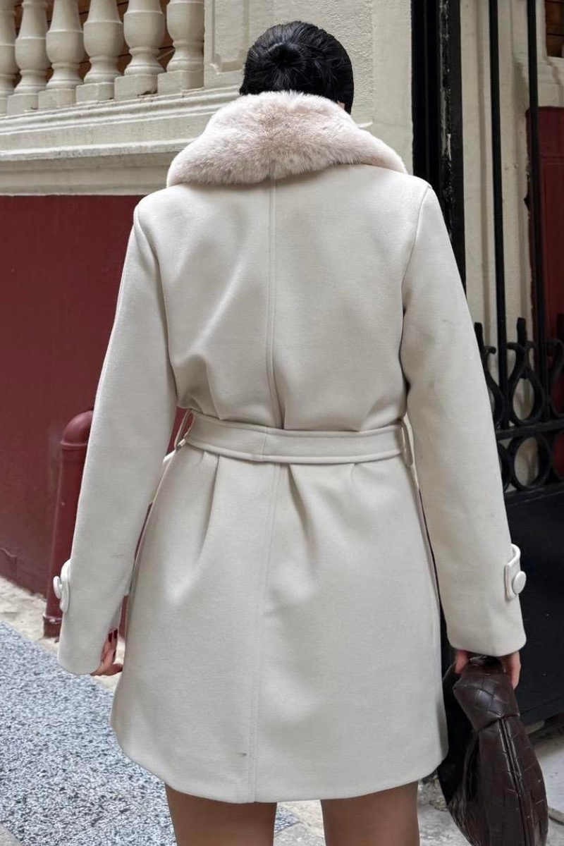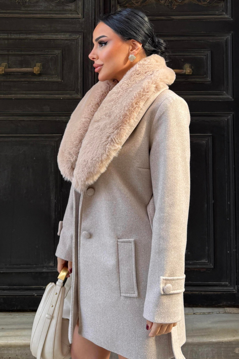 Chic mid-length coat with a soft faux fur collar — warm, stylish, and perfect for polished winter outfits.