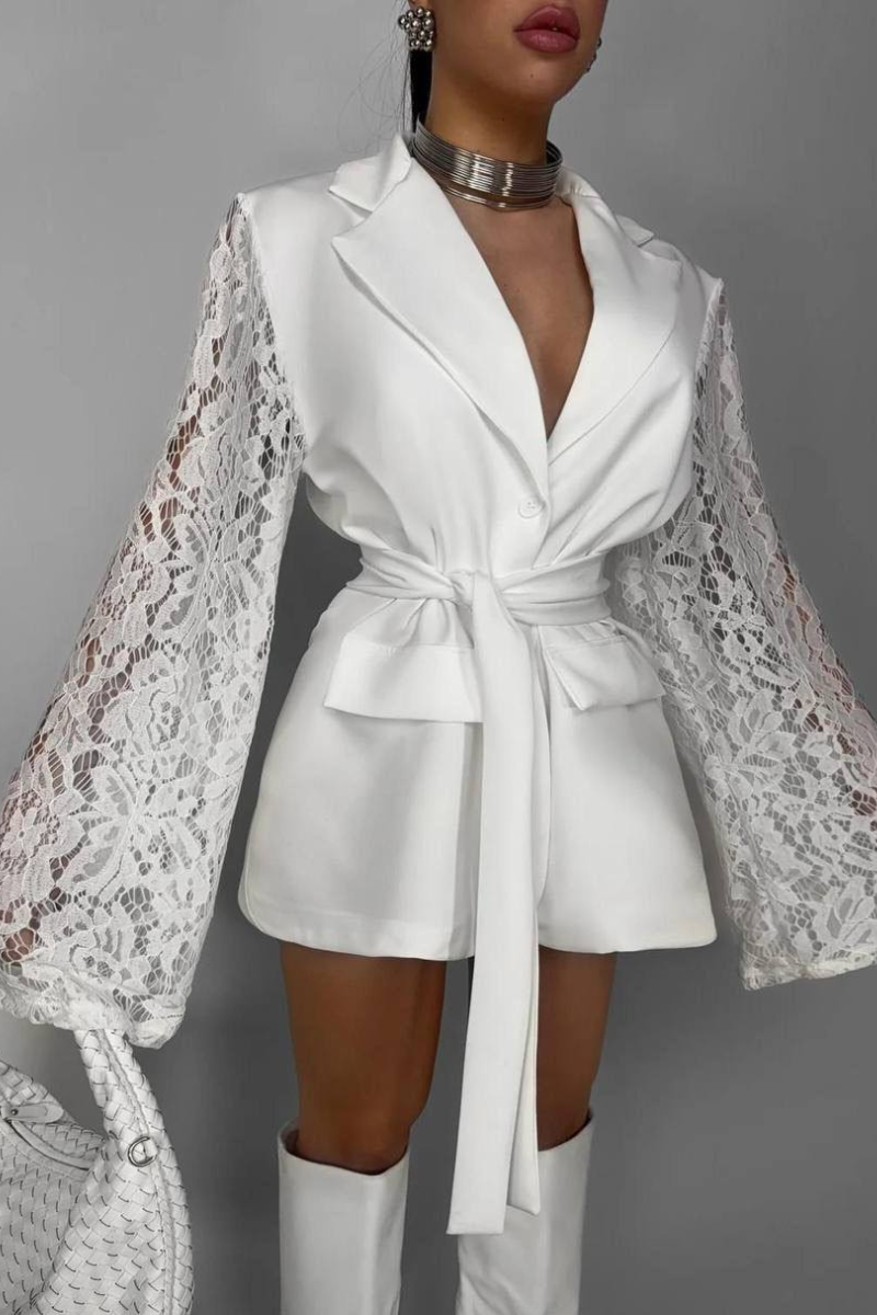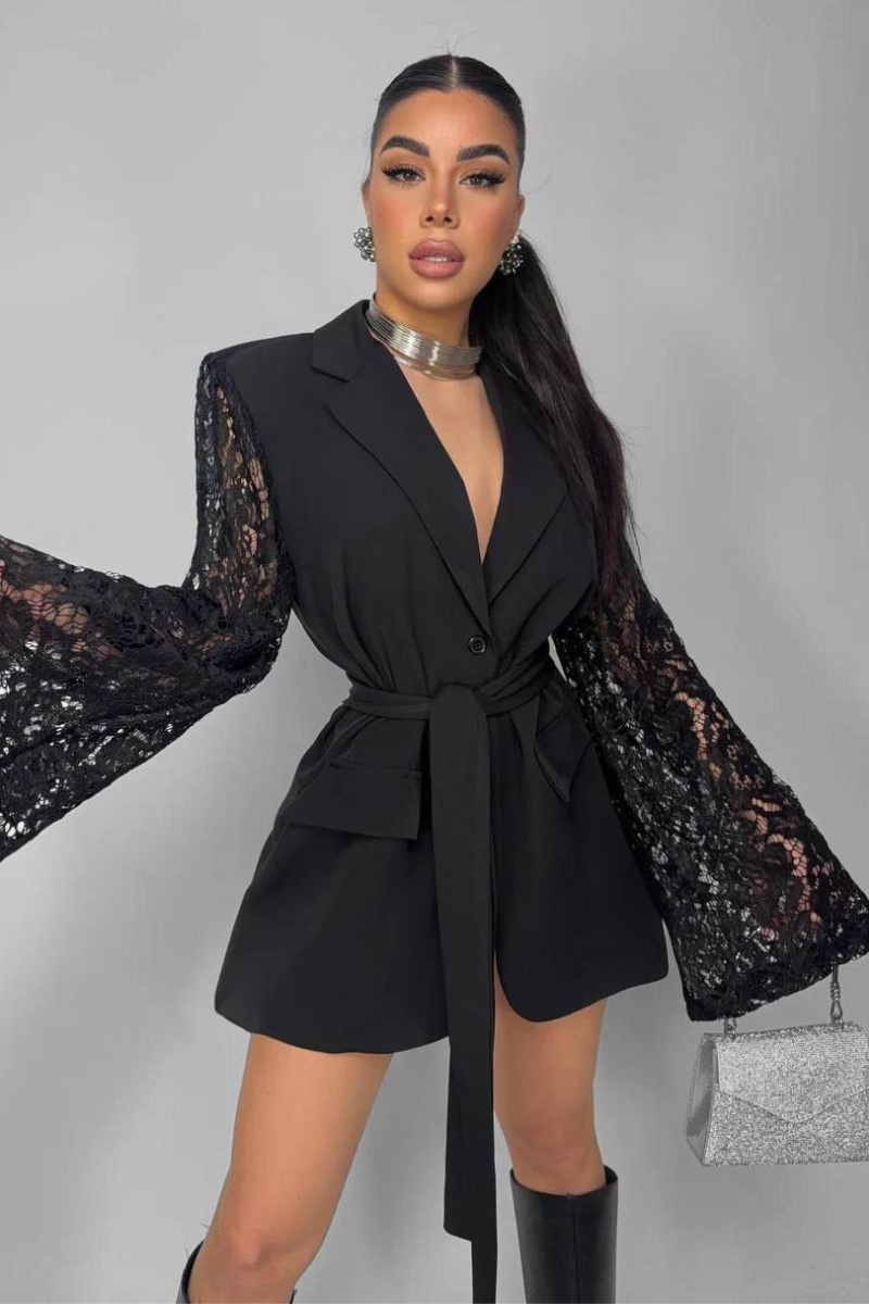 A sophisticated blazer-style dress crafted with delicate lace detailing for a feminine, elegant touch.
