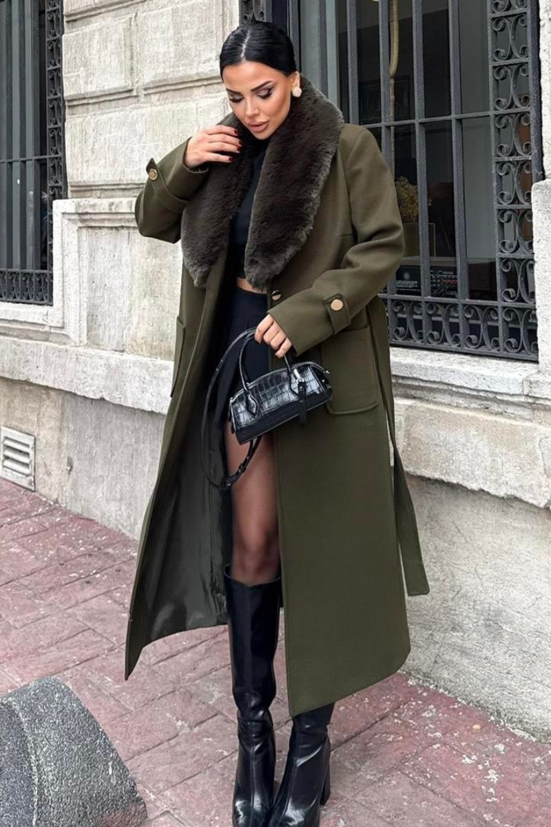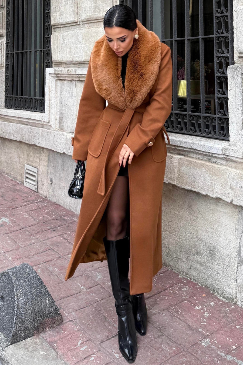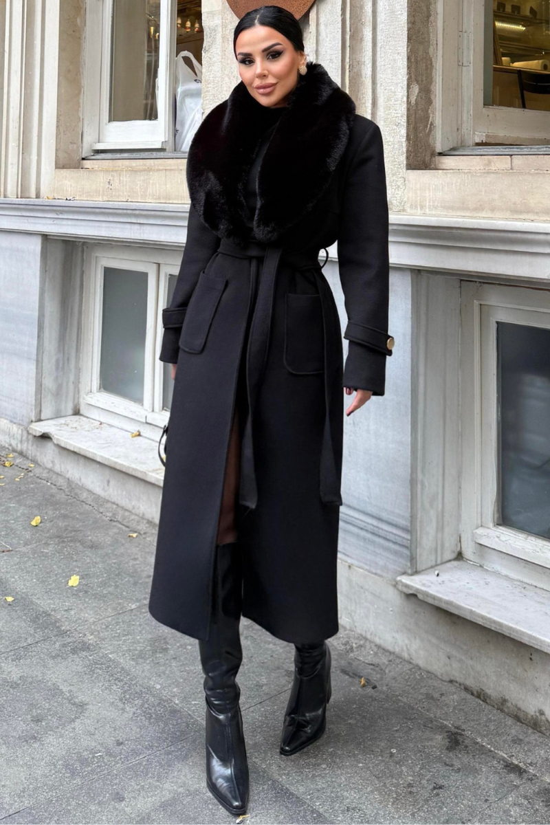 Luxurious long coat with a soft faux fur collar — elegant, warm, and perfect for refined winter style.