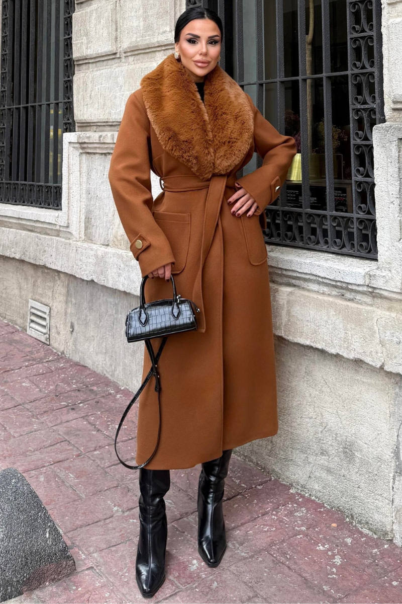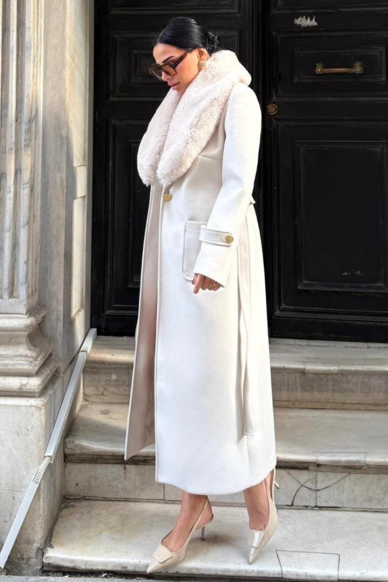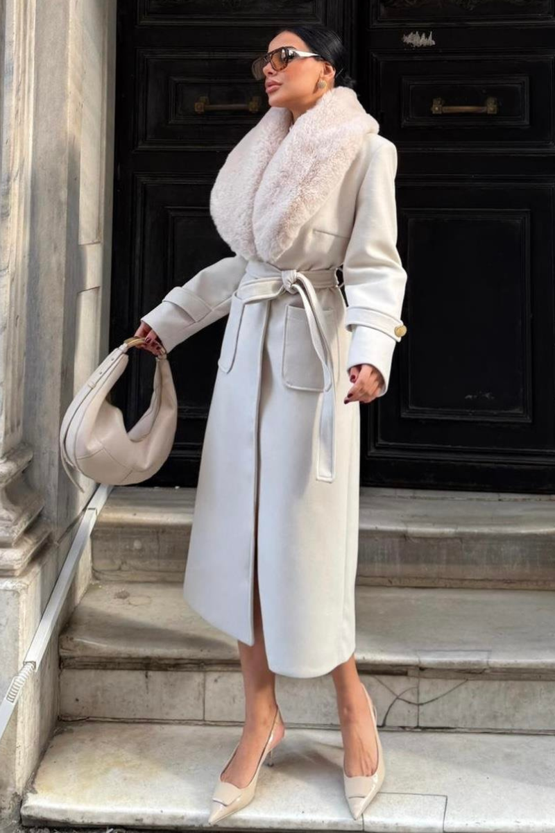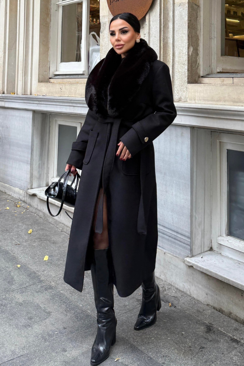 Luxurious long coat with a soft faux fur collar — elegant, warm, and perfect for refined winter style.
