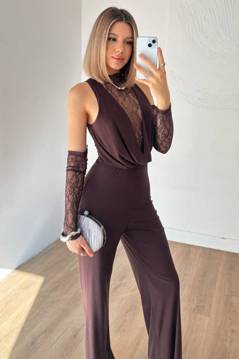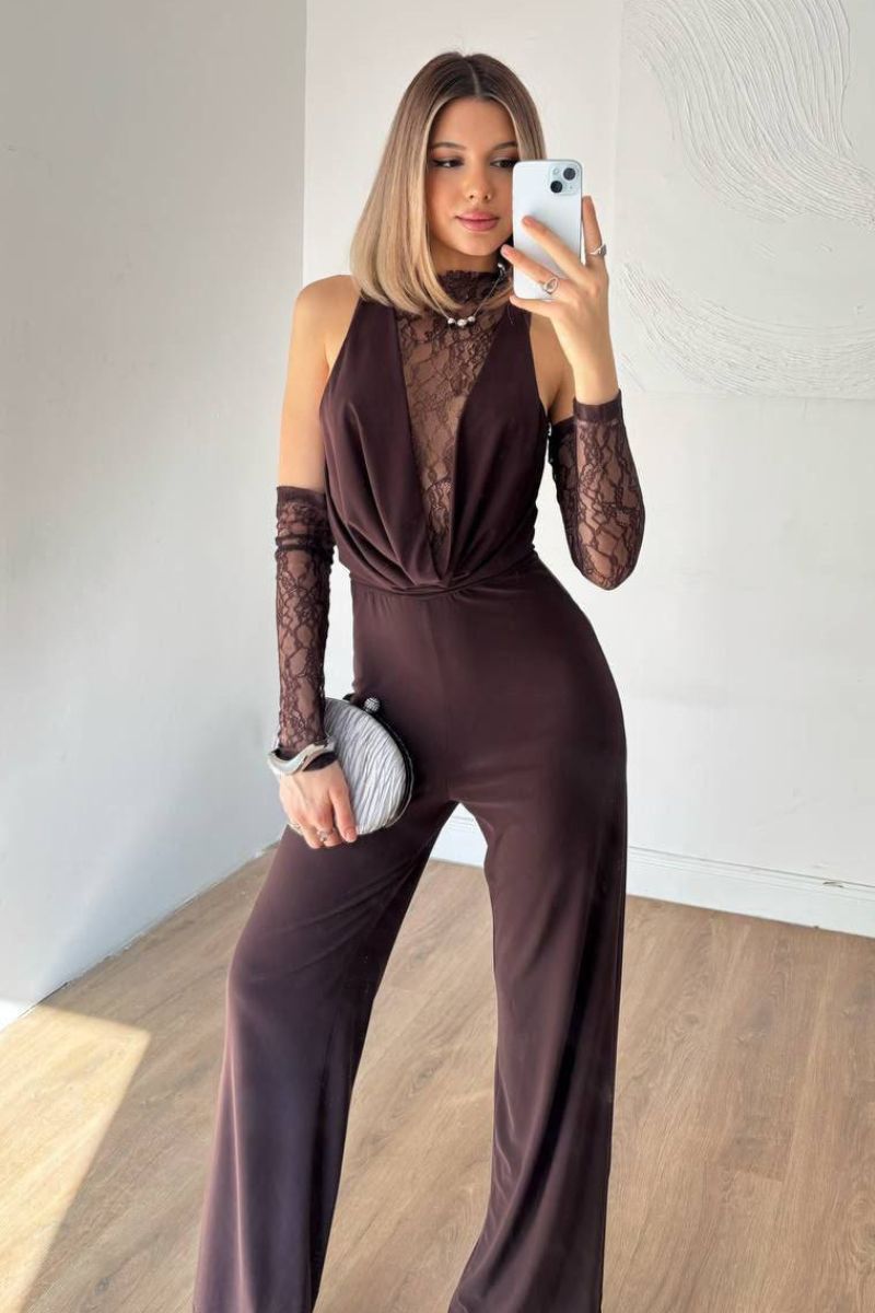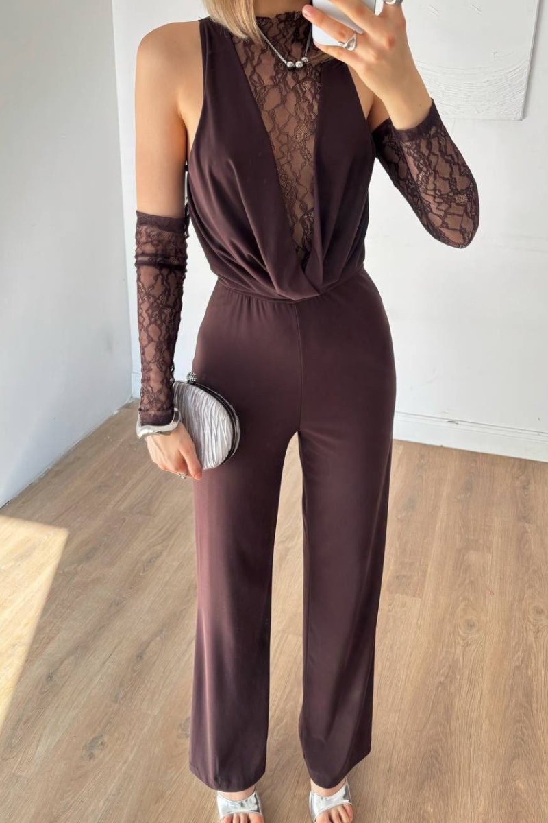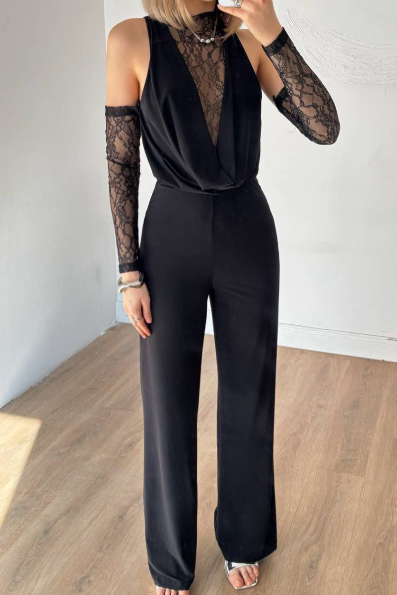 A chic, all-in-one jumpsuit featuring delicate lace accents for a feminine, elegant touch.