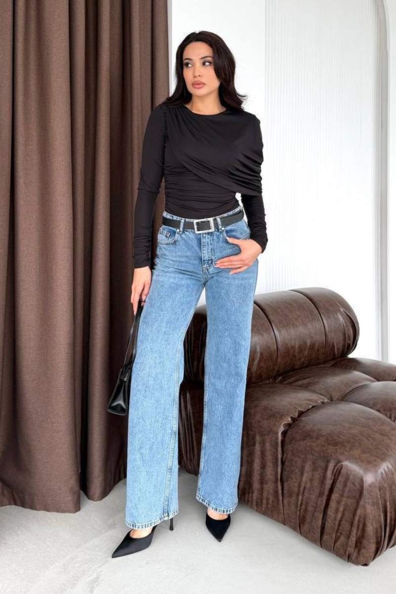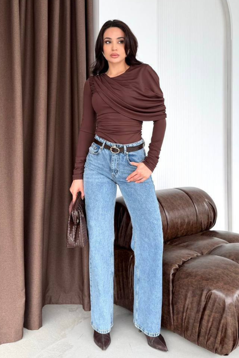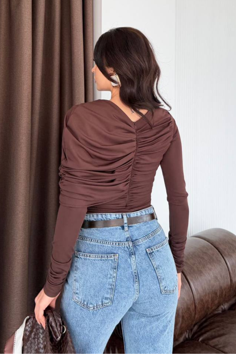 An elegant blouse crafted from premium luxury fabric, featuring a beautifully ruched design that enhances the silhouette.