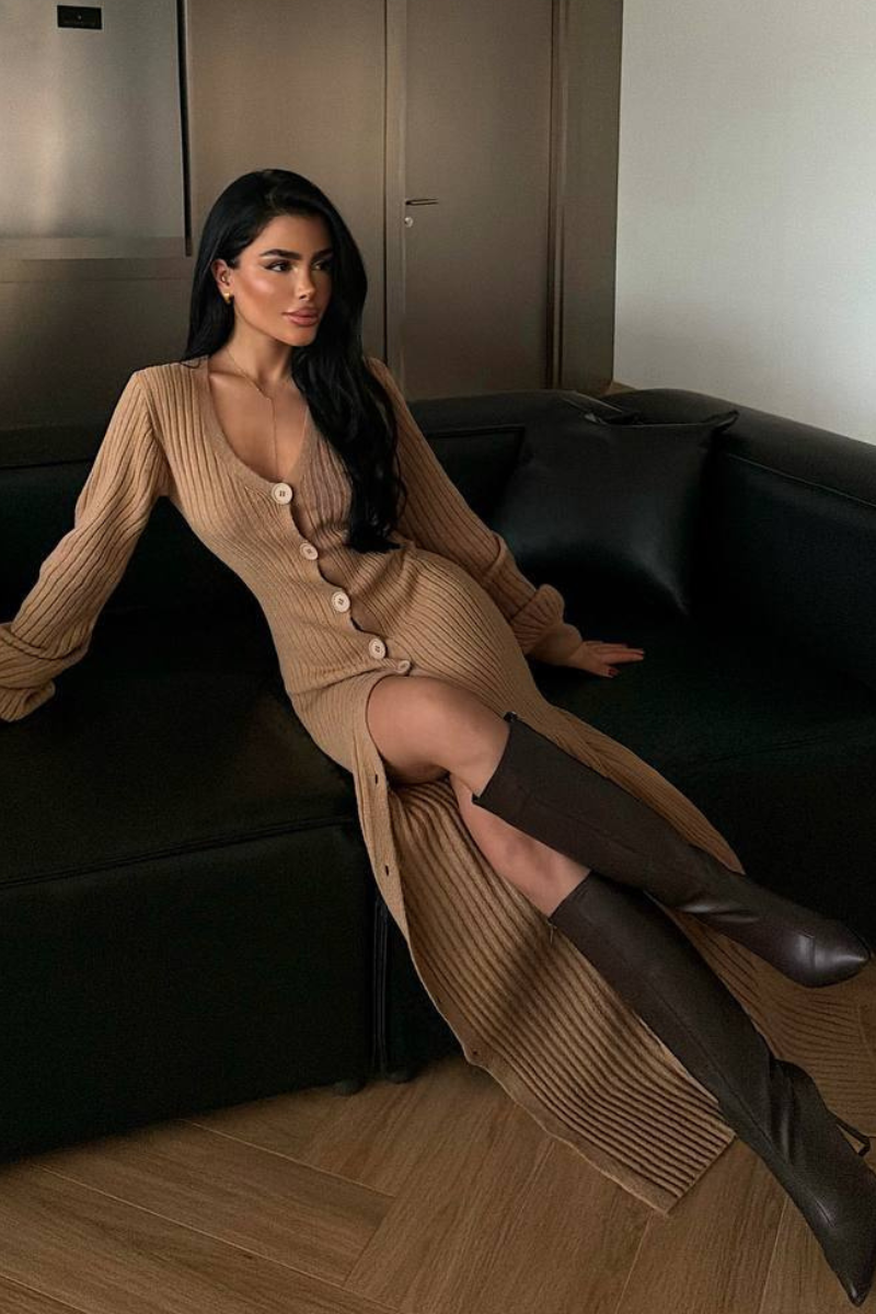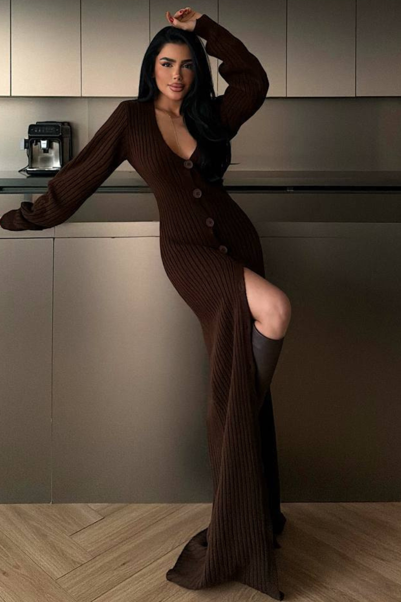Stay cozy in effortless style with this maxi knit sweater, crafted from soft, breathable yarn for all-day comfort.
