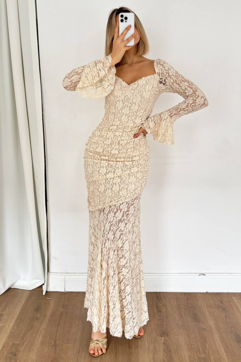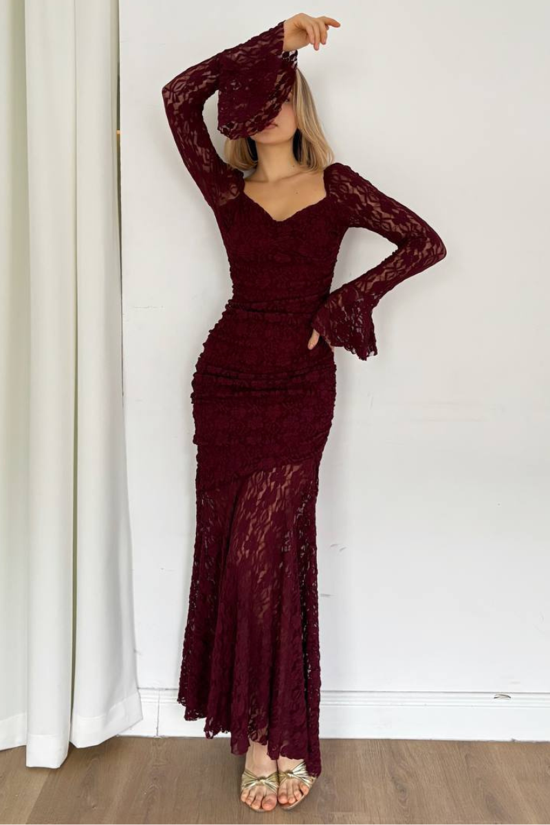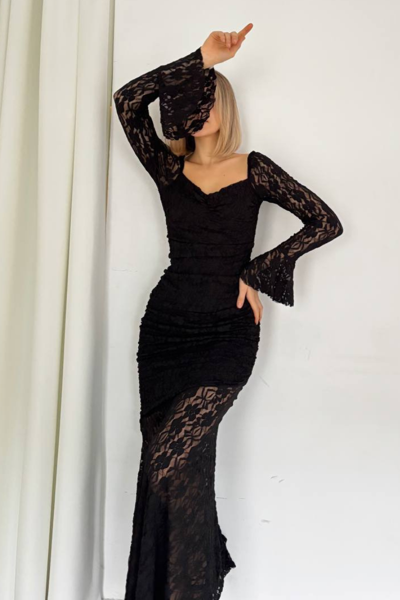 An elegant floor-length dress crafted with delicate lace for a timeless, feminine look.