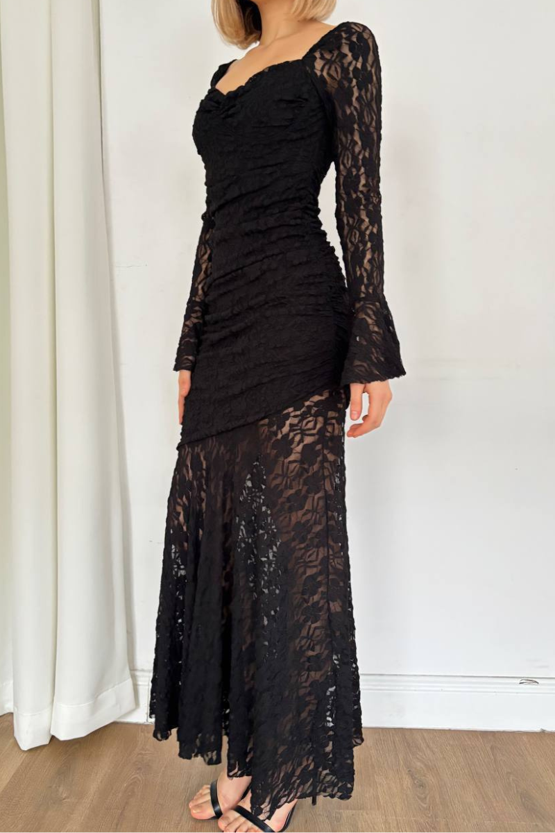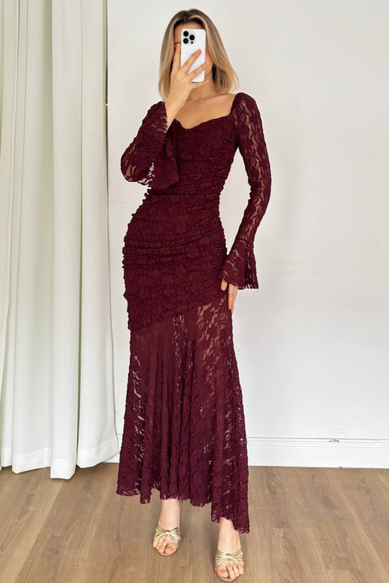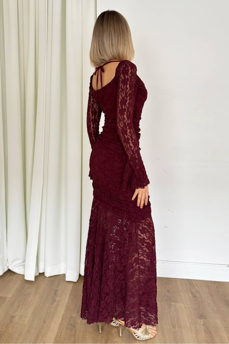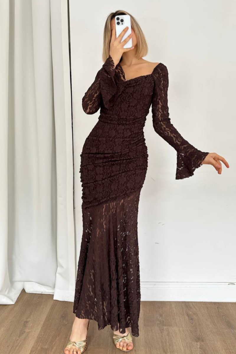 An elegant floor-length dress crafted with delicate lace for a timeless, feminine look.