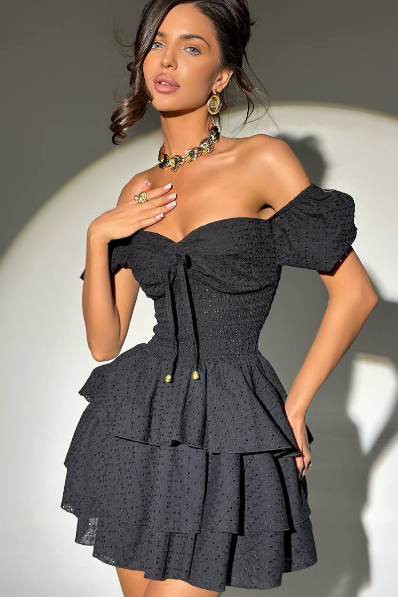 A stylish mini dress with a flattering flared silhouette, perfect for a chic and feminine look.