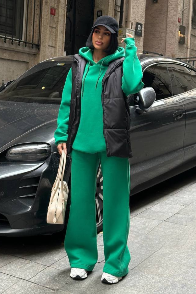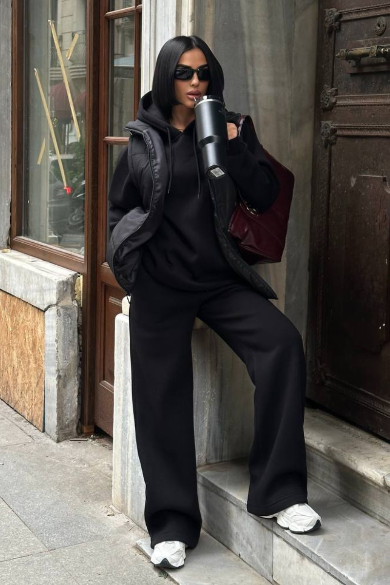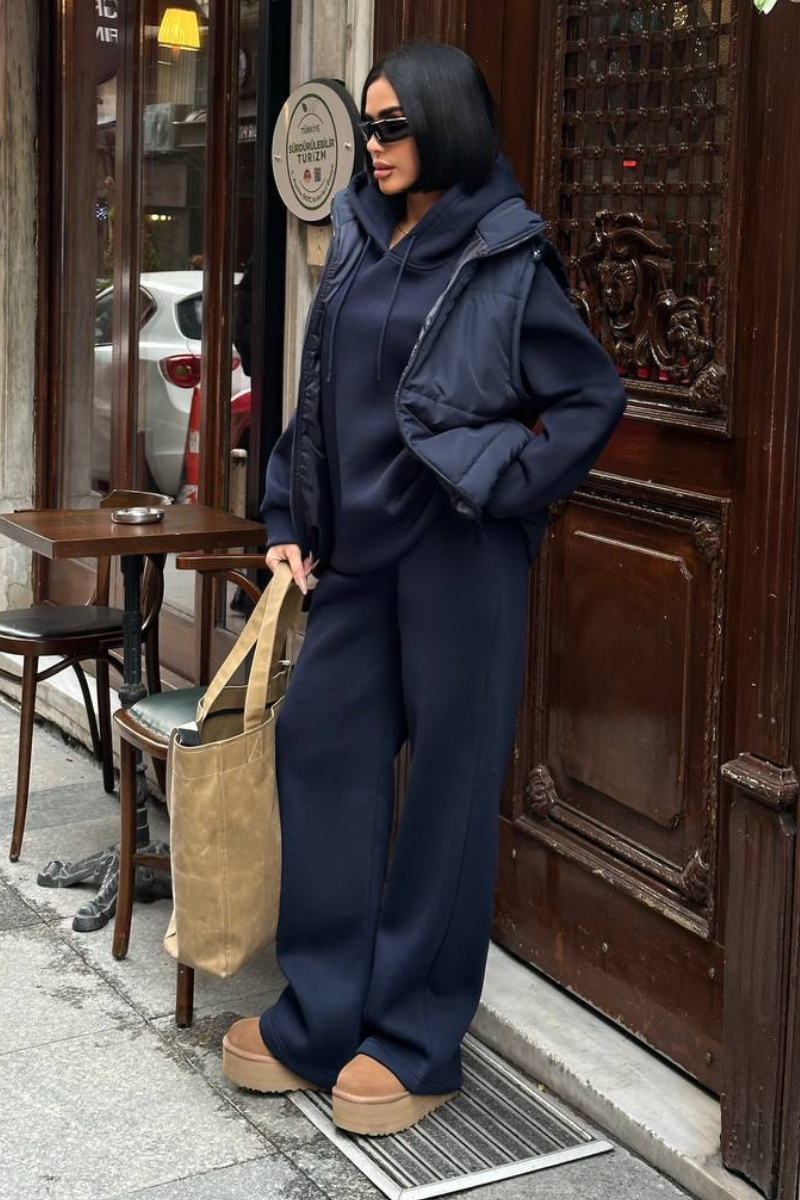 A stylish and comfortable 3-piece set featuring a matching vest, joggers, and coordinating layer for a polished athleisure look.