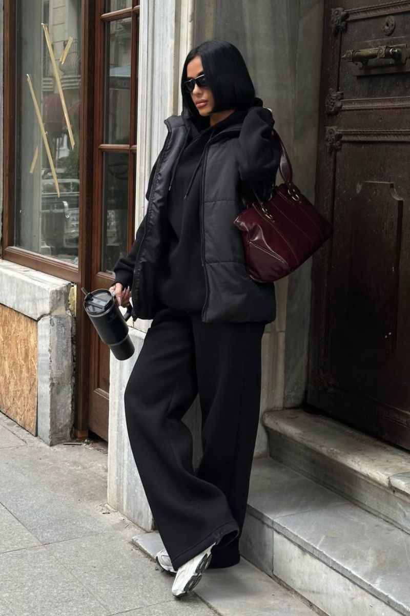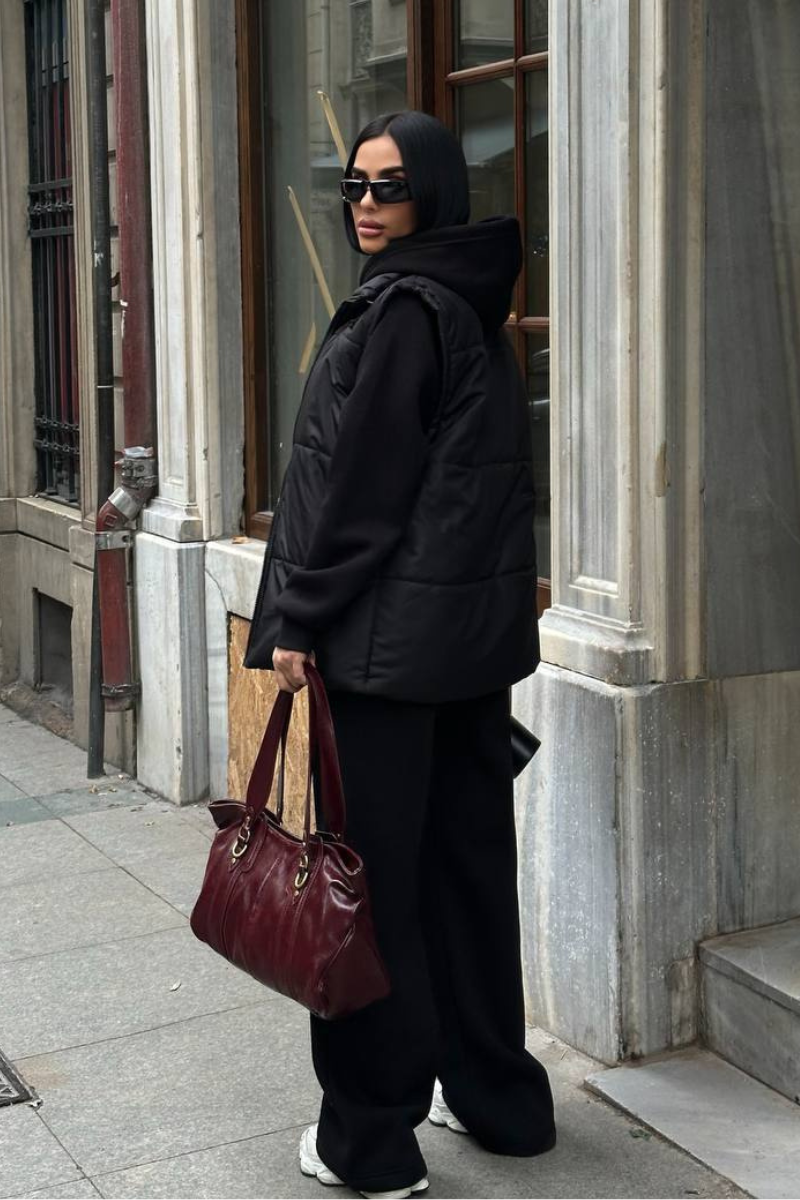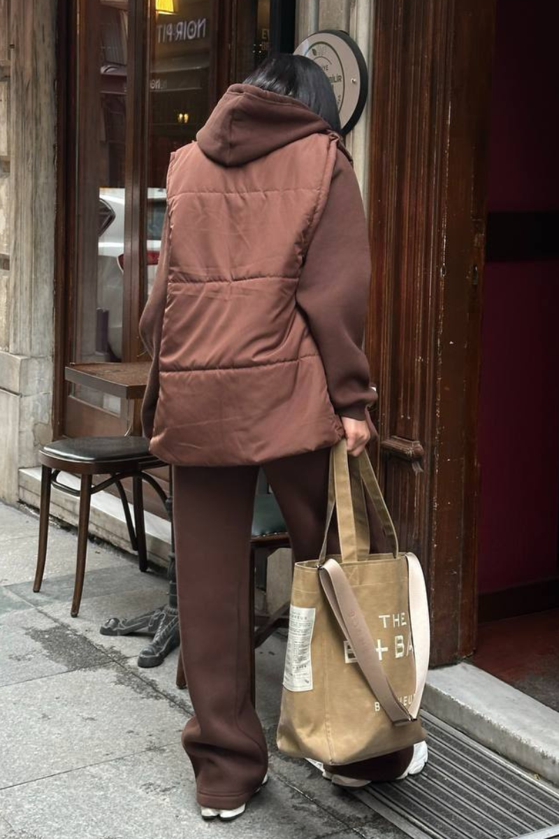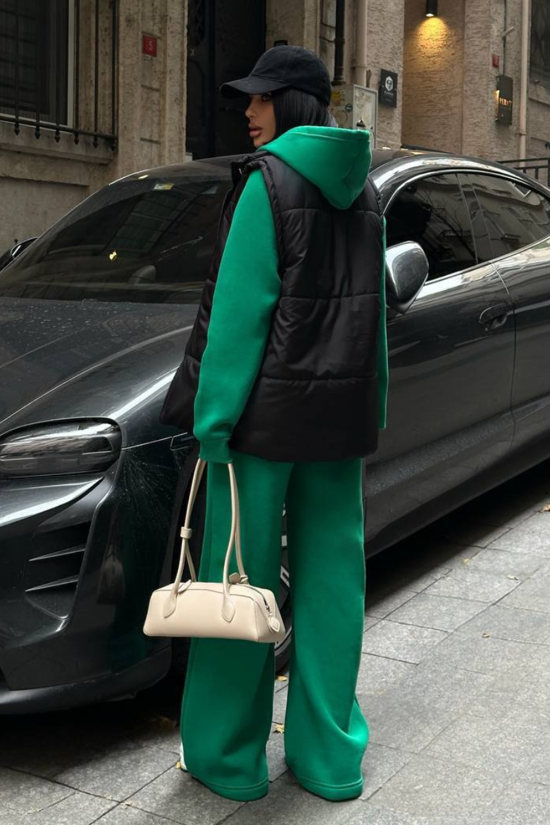 A stylish and comfortable 3-piece set featuring a matching vest, joggers, and coordinating layer for a polished athleisure look.