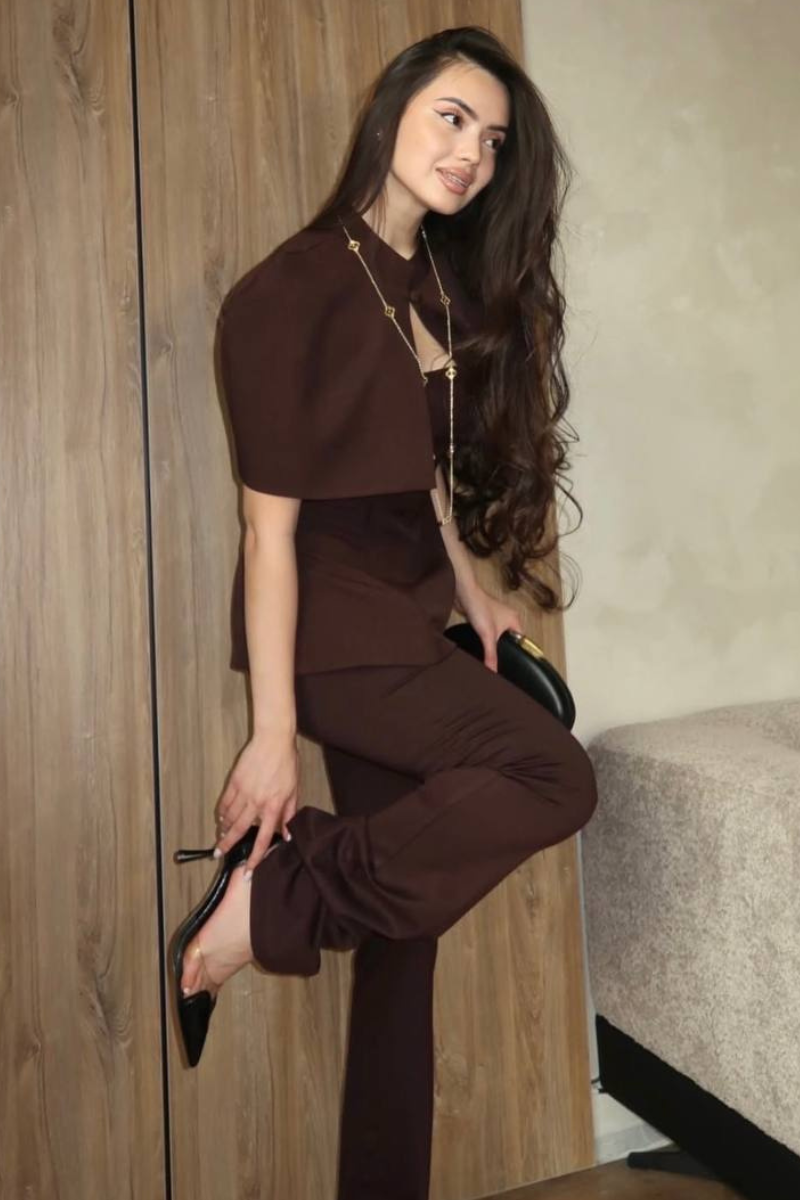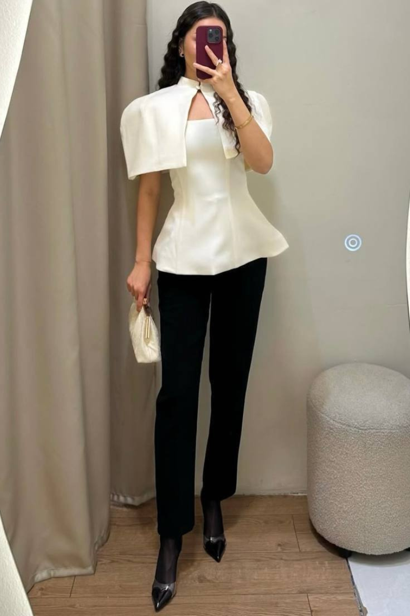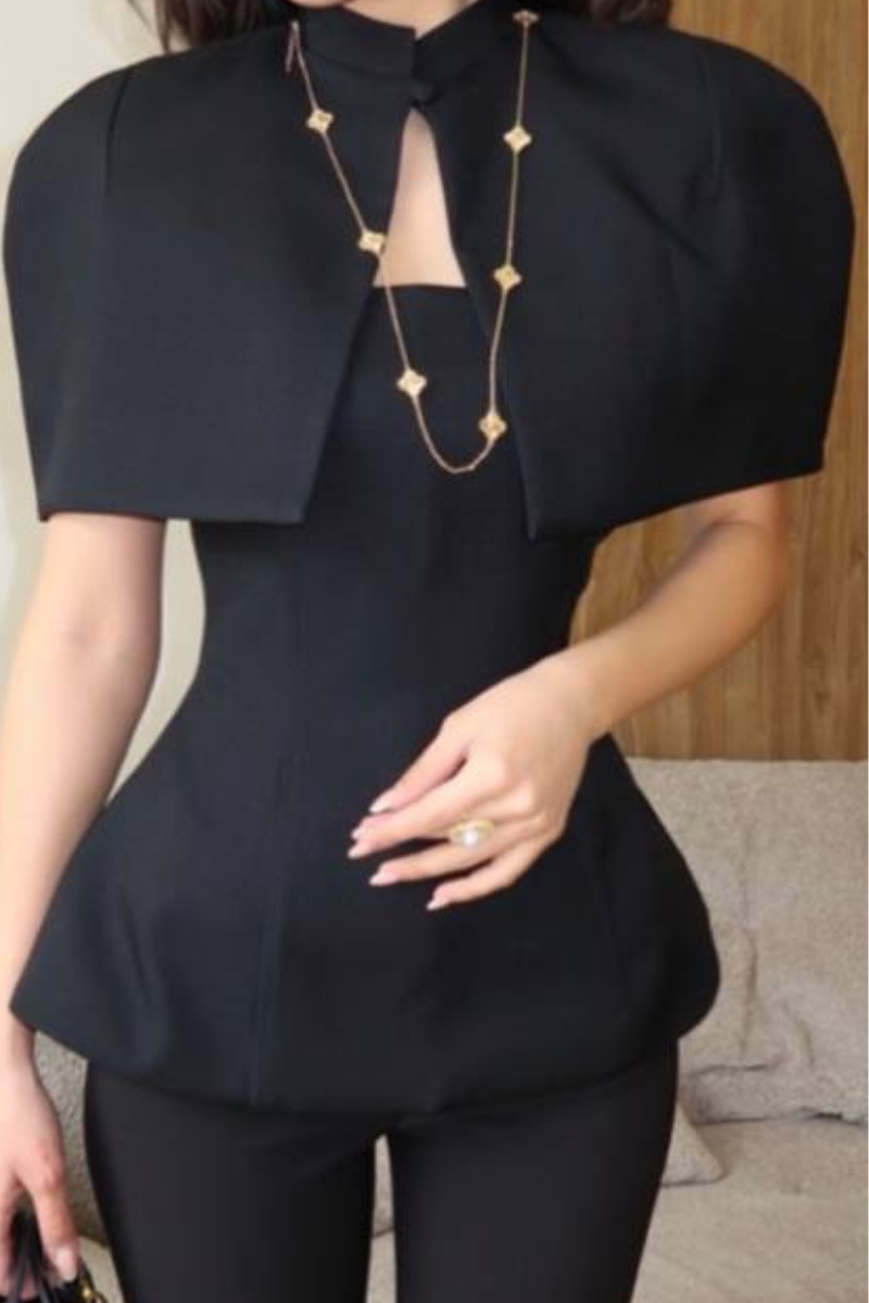 A stylish layered piece featuring a sleek top paired with a lightweight overcoat.
